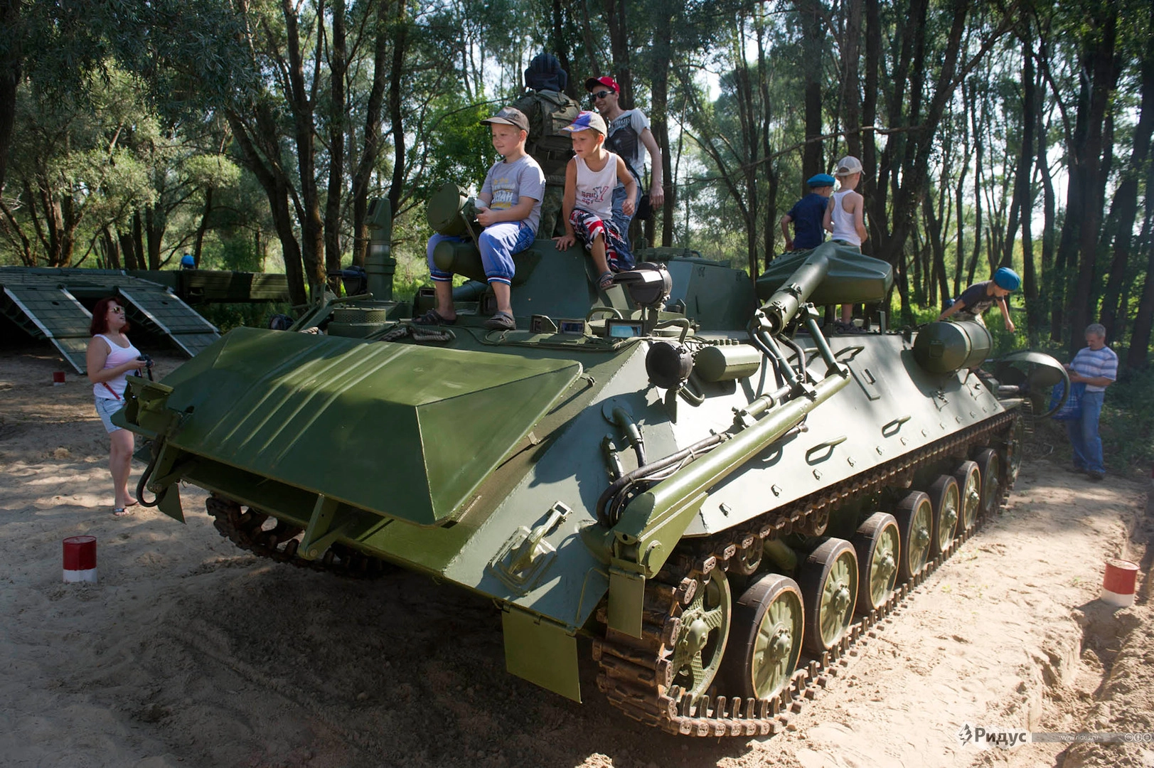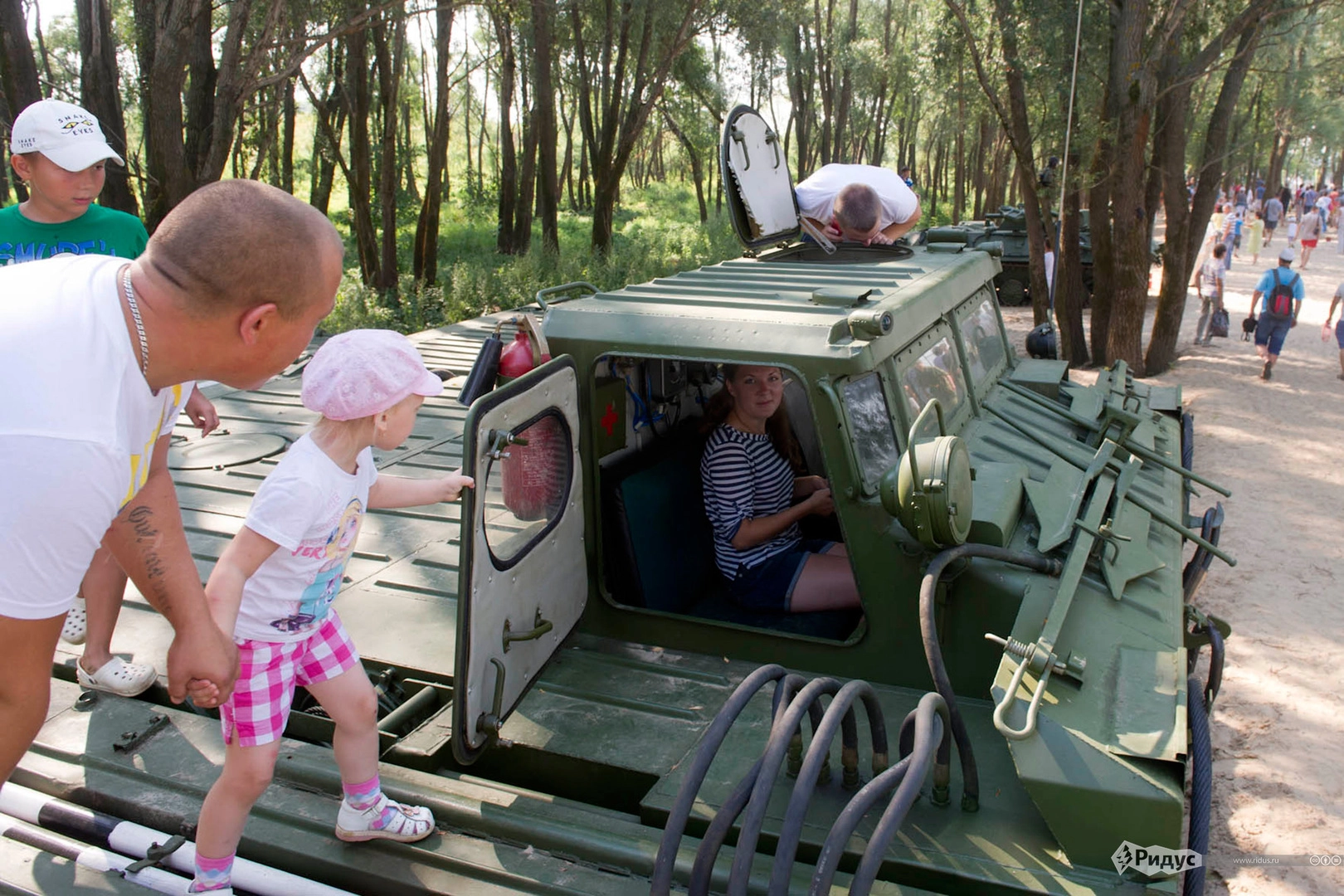 Затем реку самостоятельно форсировали бронемашины пехоты, стрелки на которых параллельно движению по воде вели обстрел предполагаемого противника. Весь этот шум взрывов и автоматные очереди взбодрили зрителей и они, оживившись на такой жаре, начали по настоящему болеть за выбранную команду. А выбор естественно пал на земляков — «зеленую» команду из Мурома.