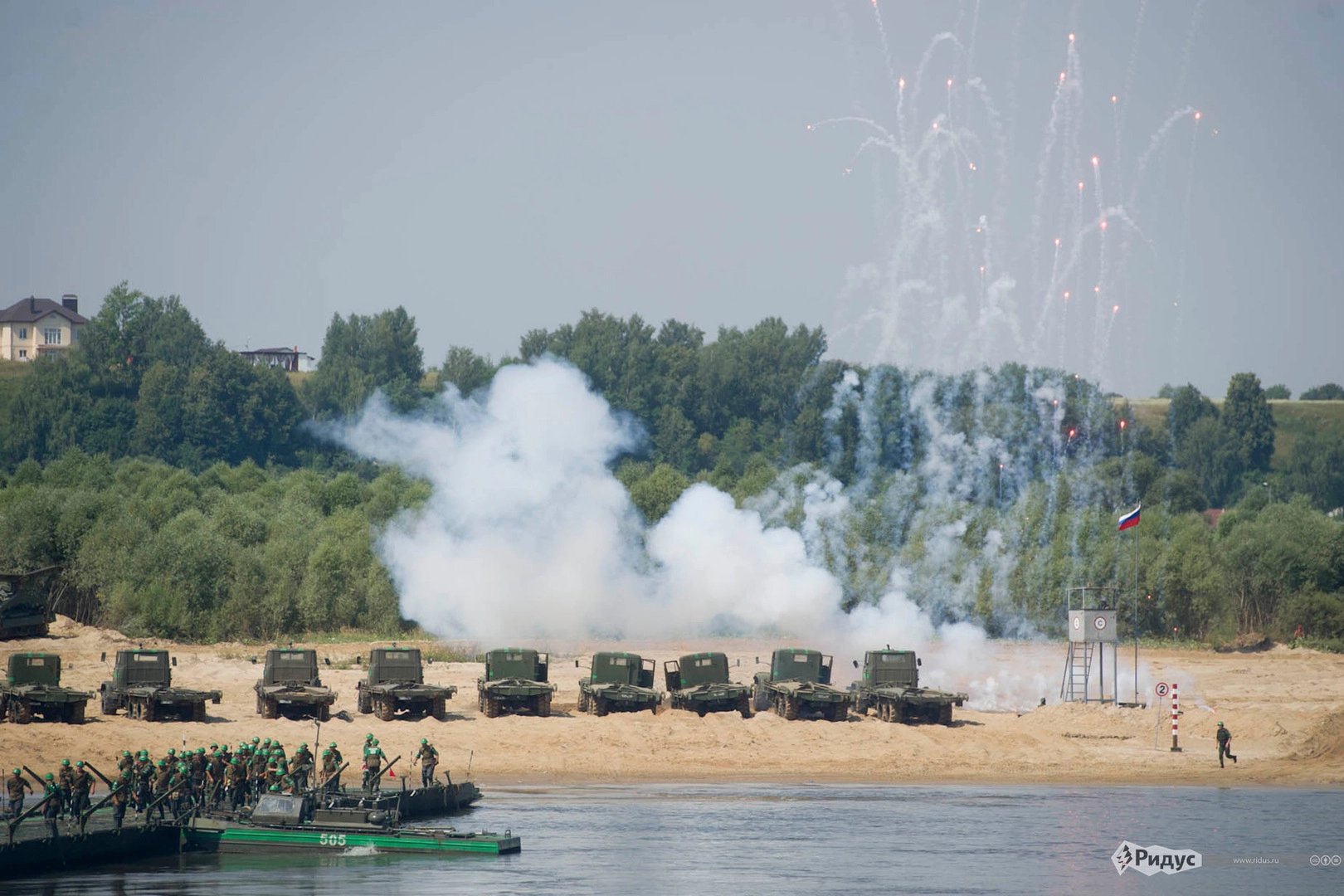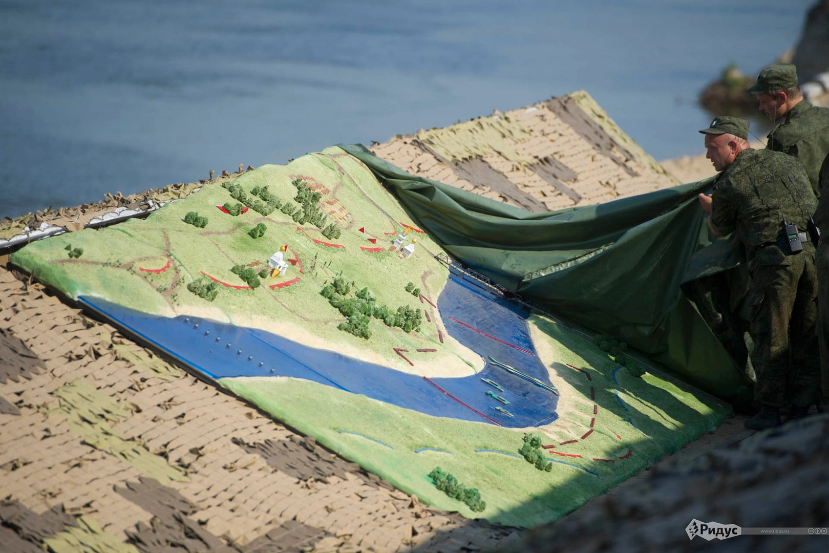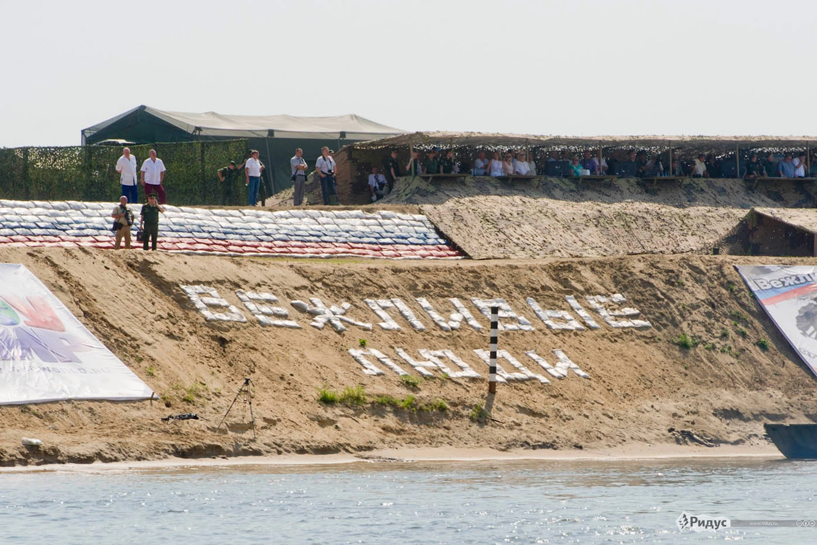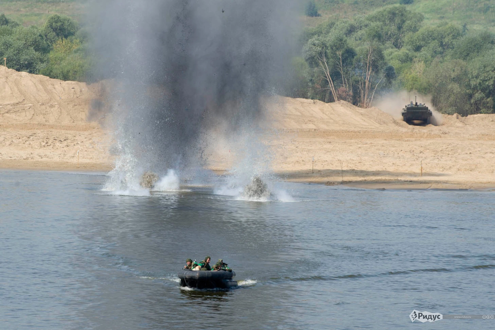 Однако никто из соревнующихся и виду не подавал, что ему жарко и сложно выполнять поставленную задачу. А задача была нелегка. Мало построить понтонную переправу для многотонных танков или форсировать реку на лодках, так еще все это надо было делать в условиях, приближенных к боевым. За секунду перед началом первого задания - форсирования реки разведывательным отрядом, пролетели два штурмовика Су-25 и на берегу прогремела серия взрывов которые продолжились фейерверком. Во время всего этого шума и дыма нужно было спустить лодку на воду, и даже после этого приключение не закончились. После того как бойцы отплыли от берега 50 метров, за лодкой прогремела серия подводных взрывов. Но ни одну команду подобные препятствия не остановили и они благополучно доплыли до противоположного берега.