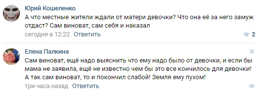Произошедший случай вызвал бурное обсуждение в соцсети «ВКонтакте». Один из подписчиков назвал погибшего «золотым человеком», а некоторые считают, что во всем виноват он сам, и оправдывают поступок матери.