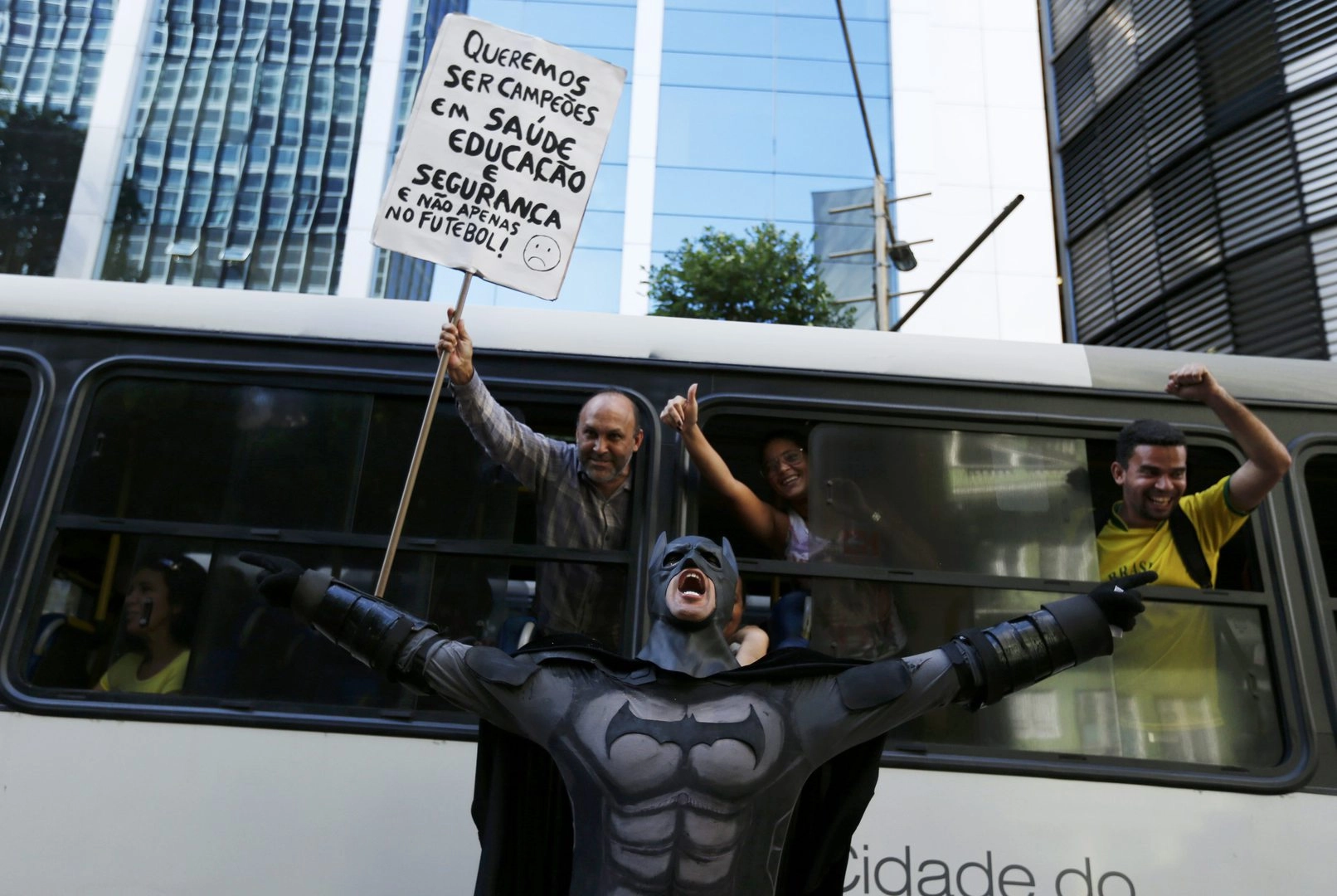 Митинги против проведения в Бразилии мунидаля начались еще в прошлом году и случаются теперь регулярно. Бразильцы, многие из которых живут за чертой бедности, негодуют, что 11,3 млрд. долларов потрачены не на социальные нужды, а на проведение чемпионата.