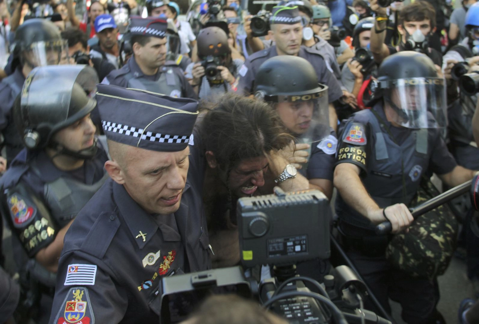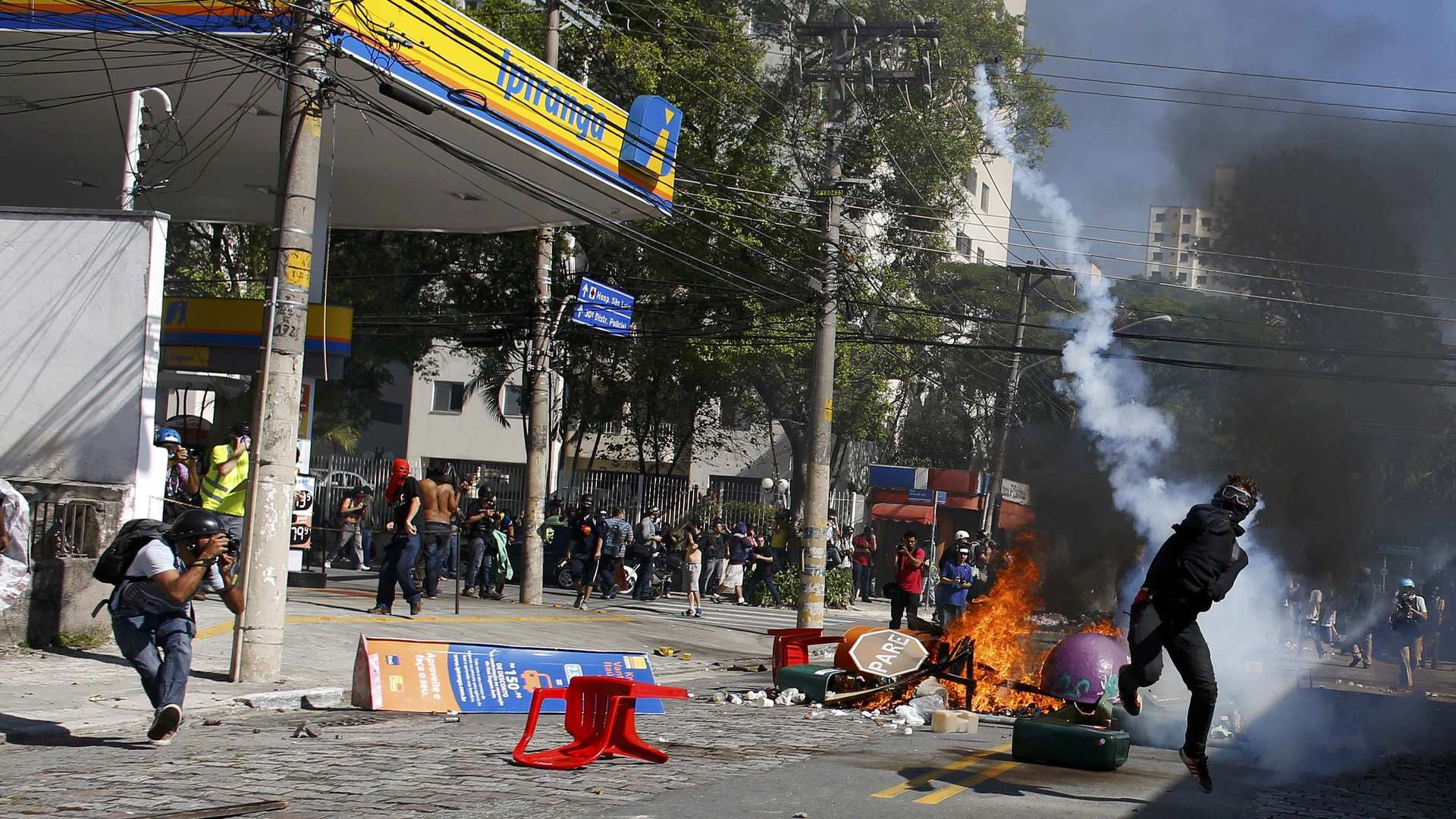 Как сообщает ВВС, большинство демонстрантов вели себя агрессивно. По оценкам очевидцев, многие из участников уличной акции в Сан-Пауло заранее подготовились к беспорядкам, у многих к моменту столкновений оказались в руках железные трубы, в полицейских полетели "коктейли Молотова".