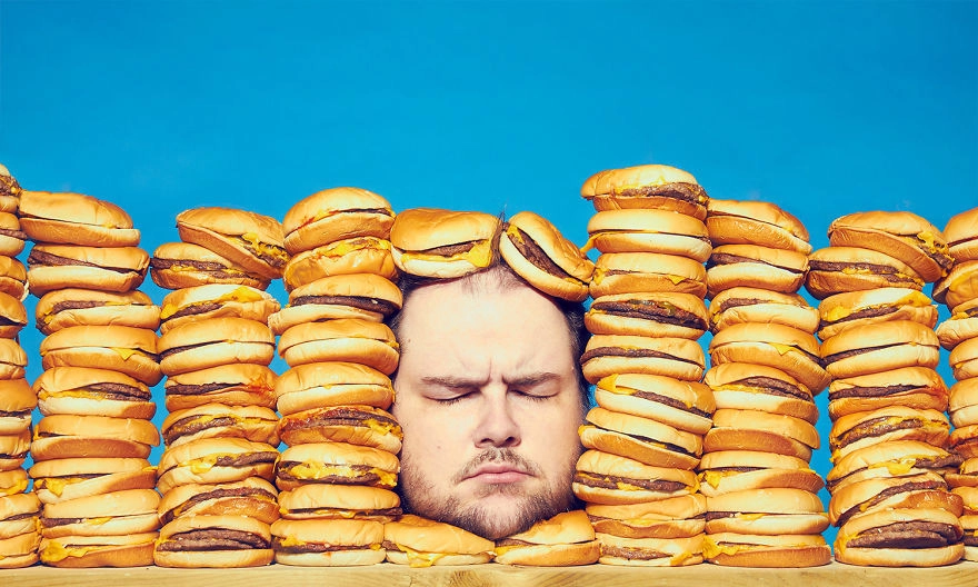 Канадский фотограф из Торонто Эрик Марцинковский (Erik Marcinkowski) обычно снимает моделей в различных проектах. Однако, обладая лишним весом, однажды канадец задумался о своём образе жизни и питании. Результатом стало похудение почти на 30 килограммов и серия причудливых автопортретов под названием «DiscomfortFood» — «Дискомфортная еда».