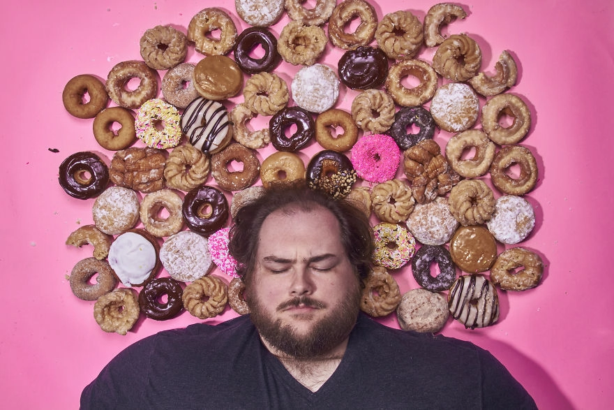 «Когда я задумал серию „DiscomfortFood“, этот образ был одним из самых важных во всей серии. Сметанные глазированные пончики — мой второй любимый тип еды».