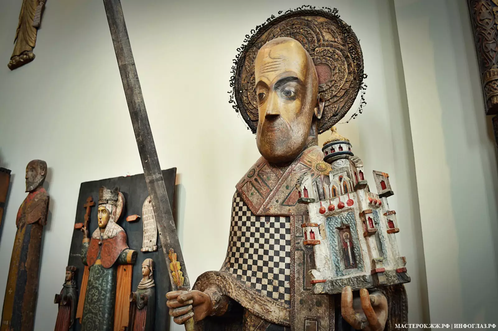 Как я уже говорил, статуи свозили в Пермь из разных деревень и городков севера Пермского края. В музеях самого Севера — в Соликамске, Березниках, Усолье, Чердыни, деревянных скульптур не так много, буквально единицы. Большинство же их осело здесь, в художественной галерее Перми.