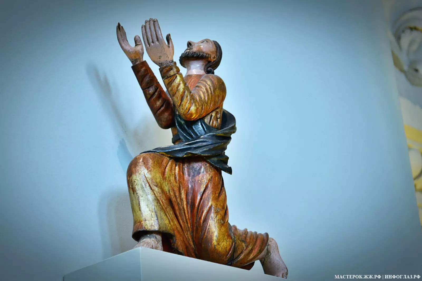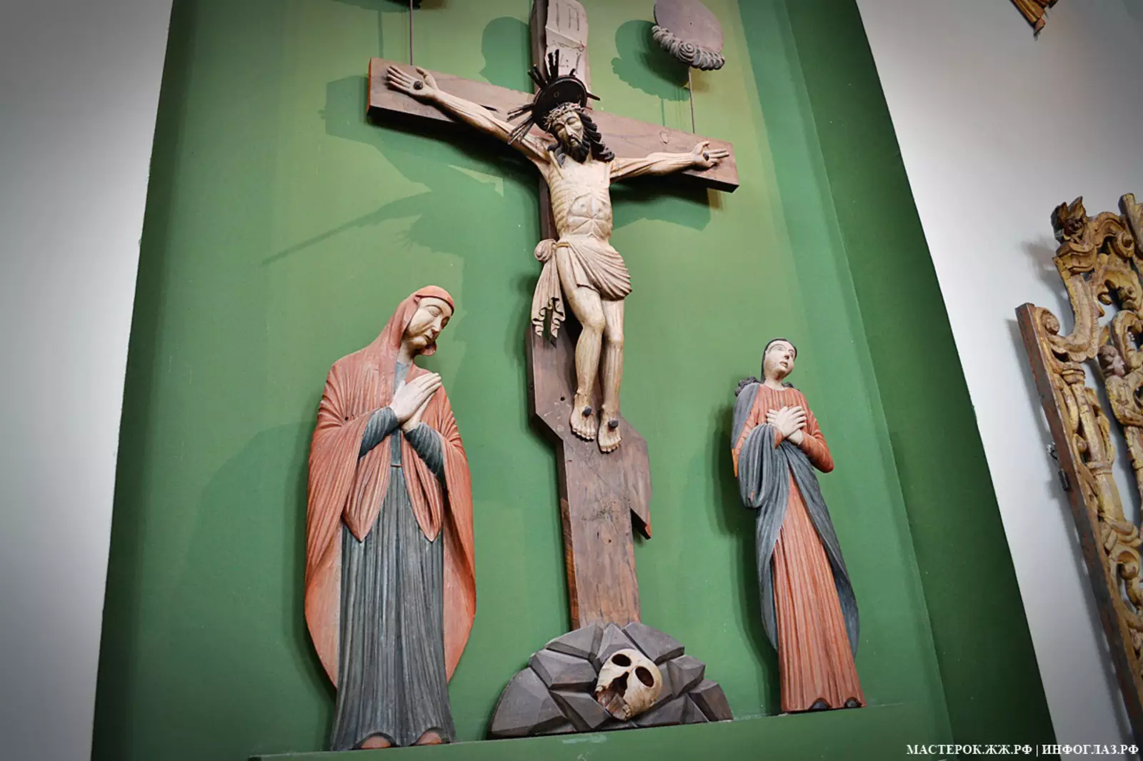 А эта фигура Христа венчала иконостас в соборе Лысьвы. Сам же иконостас был огромным и богато украшенным резьбой, хоть и не таким большим как здесь, в Перми. Несколько фигур — вот всё, что от него осталось.