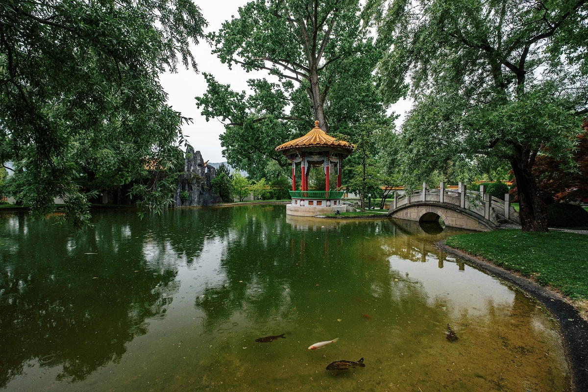 История сада максимально странная. В какие-то дремучие времена швейцарцы помогли славному городу Куньмин (где я кстати бывал, так еще дыра) с постройкой водопровода. Те в свою очередь решили отблагодарить и в ответ построили сад в лучших восточных традициях — бамбук, пагода, пруды с карпами и прочая атрибутика. Под дождем гулять конечно дело сомнительное, но зато инстаграмся и фотографируй до посинения. Народу никого. Ну и в целом атмосферненько.