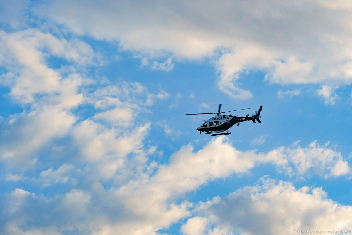 В небе над протестующими без перерыва летал полицейский вертолет.