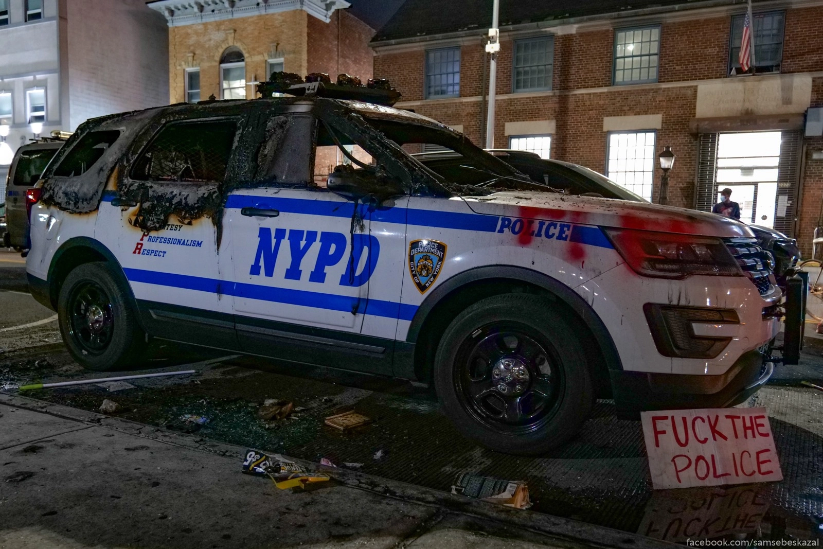 Fuck the police. Новенькая сгоревшая патрульная машина.
