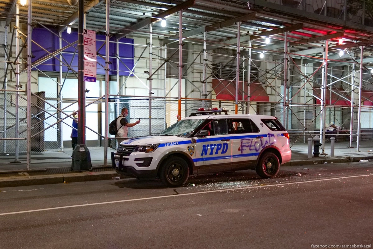 Во многих городах США ежедневно проходят многотысячные акции протеста спровоцированные убийством чернокожего полицейским в Миннеаполисе. В Нью-Йорке все начиналось исключительно мирно, но с каждым днем протестующие и полиция проявляют по отношению друг к другу все больше агрессии и насилия. Теперь это уже не единичные локальные очаги, а многочисленные вспышки в разных районах города.