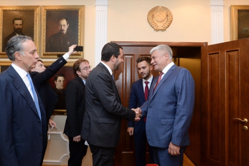 В МВД России прошла встреча министра внутренних дел РФ генерала полиции Владимира Колокольцева с вице-премьером Италии, министром внутренних дел Маттео Сальвини.