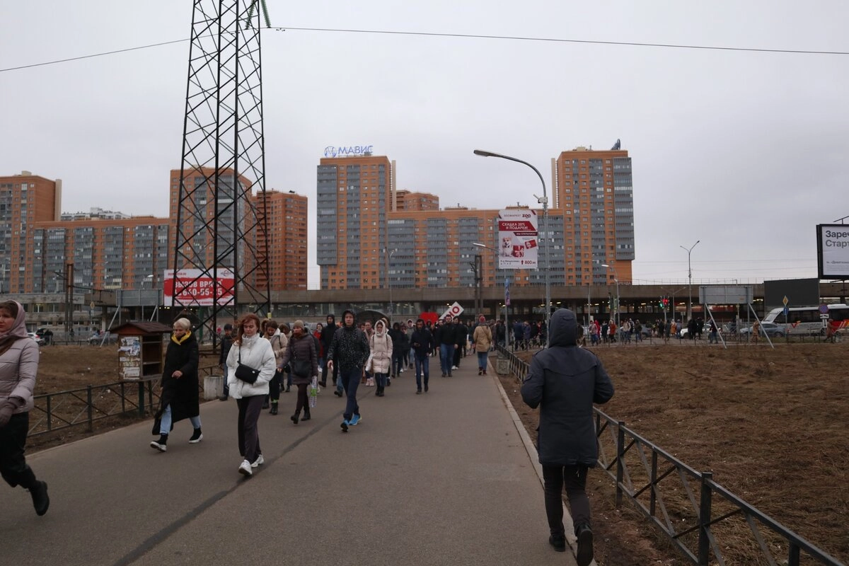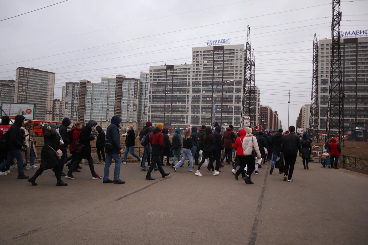Это не митинг, не первомайская демонстрация. Это жители Мурина возвращаются домой в вечерний (!) час пик со станции метро. Вечерний час пик, который сильно размазан по времени.