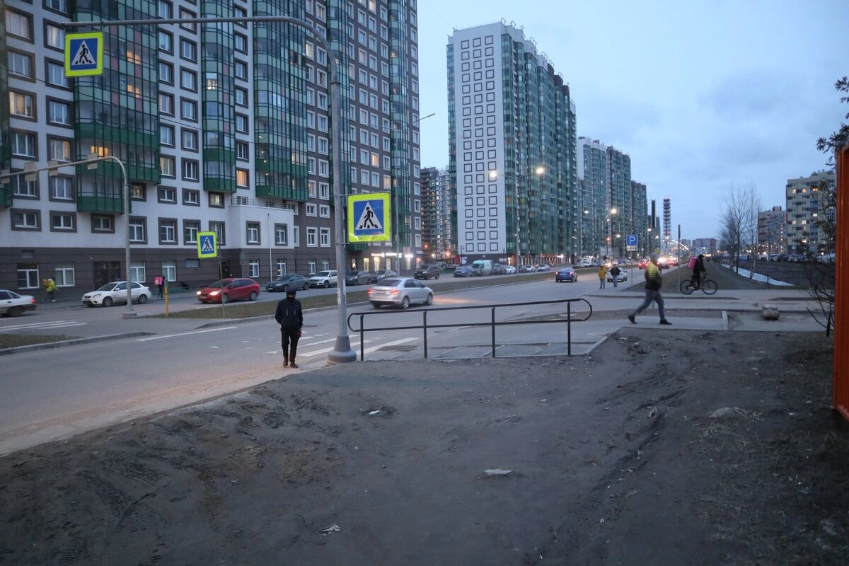 Вот в самом деле! У такого плотного района единственное удобство — что тут будет эффективен магистральный транспорт. В самом деле, протяни сюда линию трамвая с проспекта Просвещения — она будет востребована круглые сутки! От Совмещённого трамвайно-троллейбусного парка до начала Мурино всего 800 м. Тем более там, глядишь, и ещё новые человейники нарастут. Но нет, у нас другой метод.