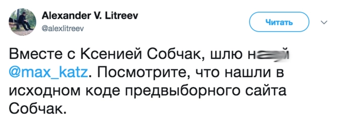 Стоит отметить, пристальное изучение сайта объединения Гудкова после заявления Ксении Собчак об участии в президентской гонке: на портале предвыборной компании Собчак были найдены отсылки к сайту mundep.gudkov.ru. Первым о подозрительных отсылках сообщил ведущий Telegram-канала «Сайберсекьюрити и Ко.» Александр Литреев: