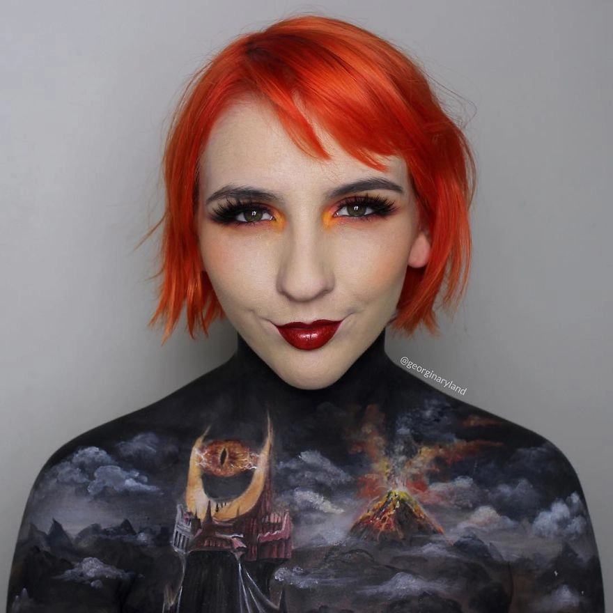 Войдя во вкус, Джорджина решила попробовать более масштабные проекты. В качестве холста визажистка использует собственное тело. Идеи для творчества черпает из популярных фильмов, сериалов и картин знаменитых художников. Собрали для вас самые крутые работы креативной австралийки.