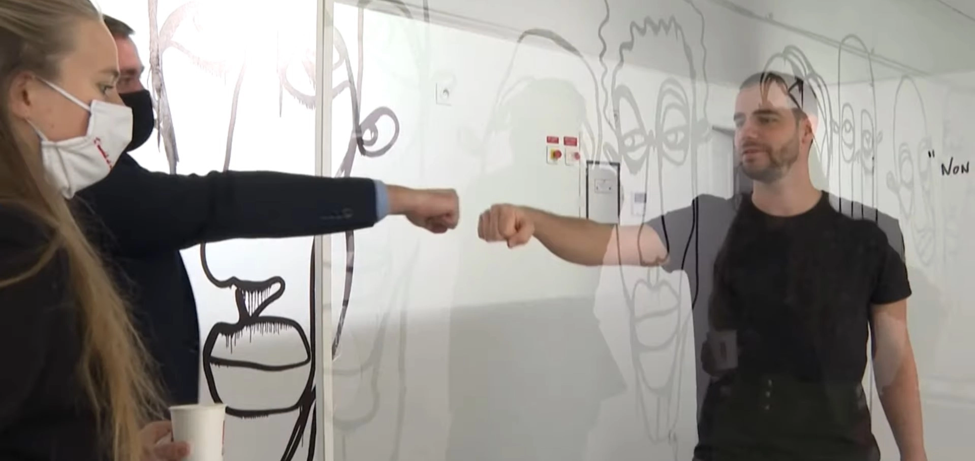 Также временный дом Гаэтана оборудован телевизором, кофеваркой и планшетом. Он проводит время за чтением книг и рисованием. Казалось бы, все замечательно, и жаловаться не на что. Но по словам художника, его действия показывают, что, несмотря на все материальные удобства, нет самого главного — важного для многих человеческого контакта.