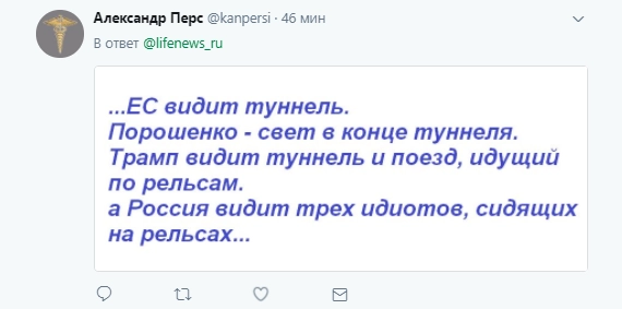 В Сети на слова украинского лидера отреагировали множеством шуток. Пользователи полагают, что он перепутал свет в конце тоннеля с приближающимся поездом.