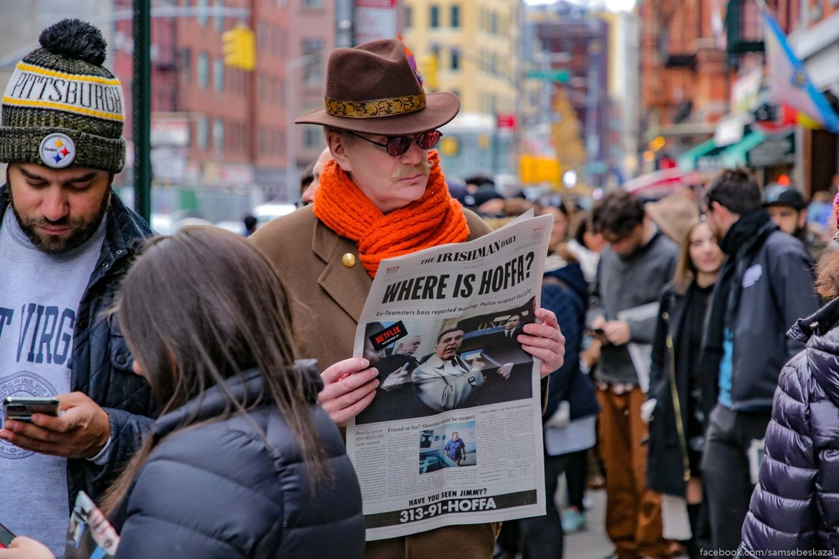 А в случае с человеком, который снял «Таксиста, «"Славных парней», «Казино», «Отступников», «Волка с Уолл-стрит» и много чего другого, это серьезное заявление. По поводу предстоящей премьеры в Маленькой Италии Манхэттена было устроено специальное двухдневное мероприятие, куда мог придти любой желающий. Узнав об этом, я, конечно же, отправился туда посмотреть на все собственными глазами.