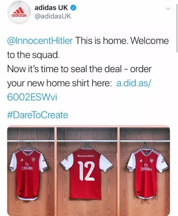 Рекламная акция британского подразделения компании Adidas и футбольного клуба «Арсенал» была сорвана неизвестными ультраправыми троллями. На официальной странице бренда спортивной одежды в Twitter появились футболки с нацистскими и расистскими лозунгами
