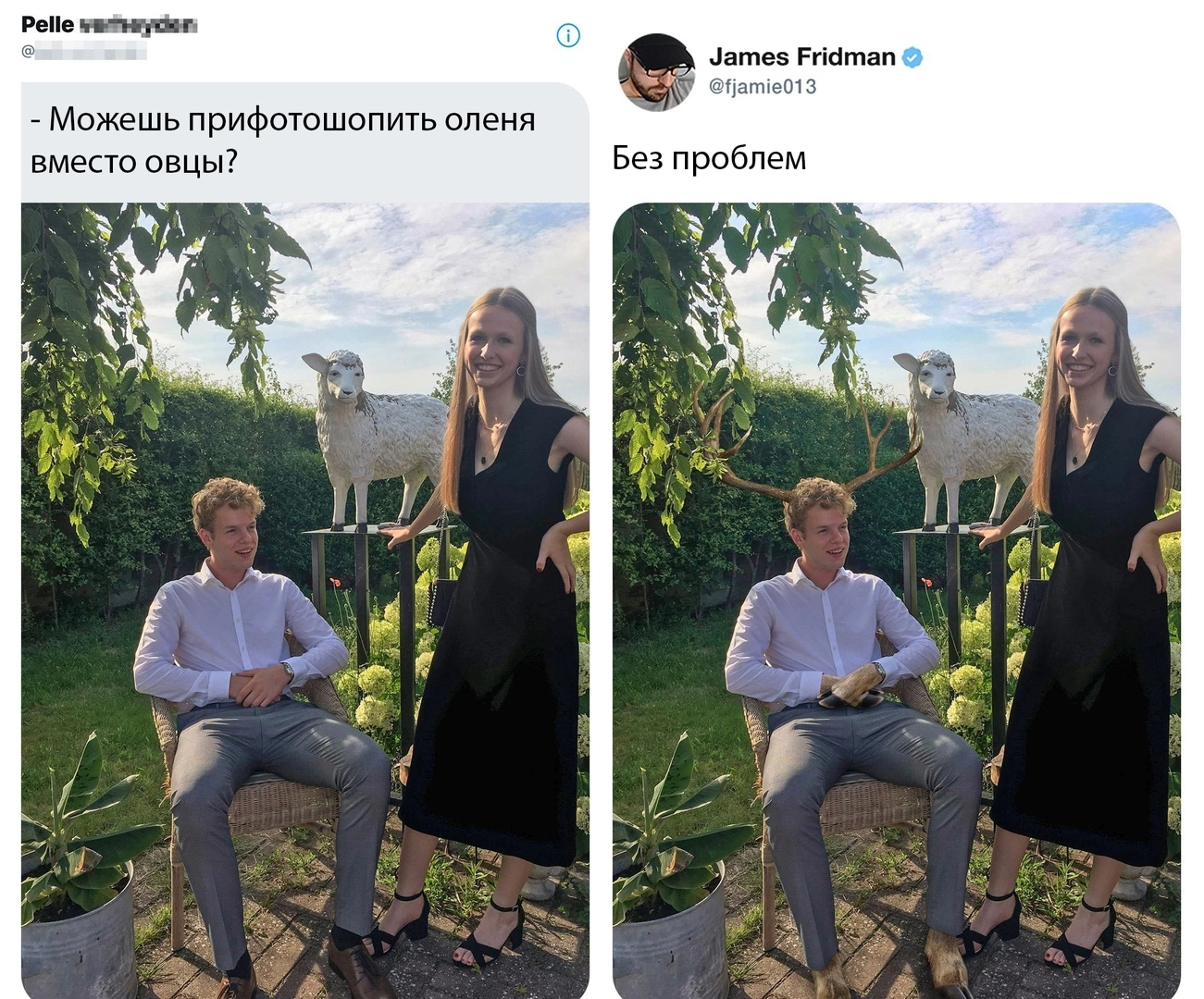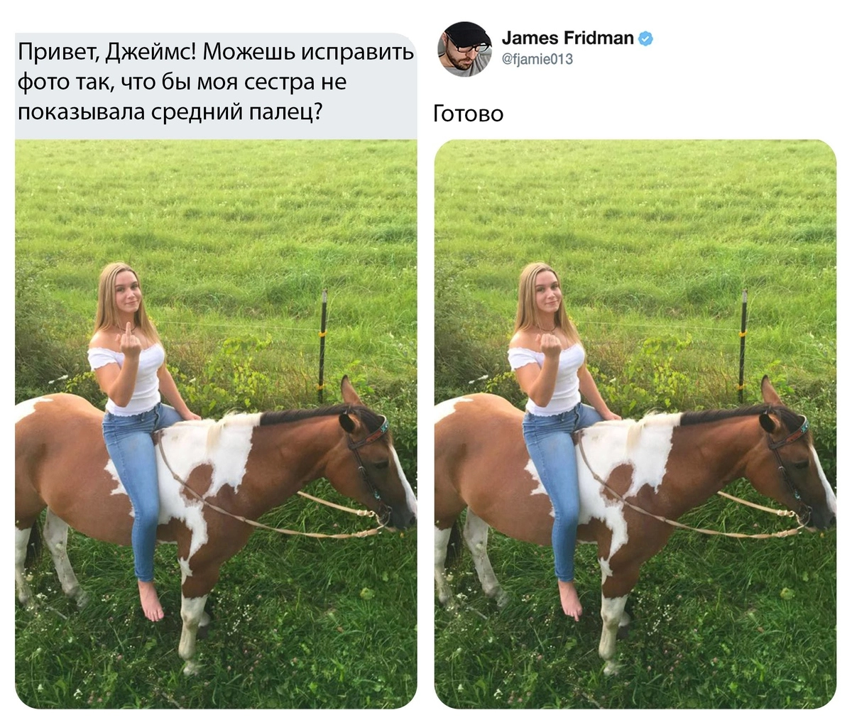 Джеймс Фридман стал популярен в соцсетях несколько лет назад благодаря своим крутым навыкам работы в фотошопе и специфичному чувству юмора. Британец продолжает радовать более 2 миллионов своих подписчиков остроумными и уморительными работами.