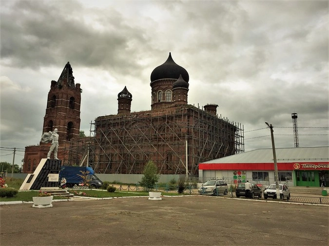 Здесь, на берегу реки Цны, располагались деревянный Троицкий храм (1792 г.), трехпрестольная Успенская каменная церковь (1816 г) и Троицкий каменный собор (1887 г). Рядом находились два двухэтажных здания школы и богодельни.