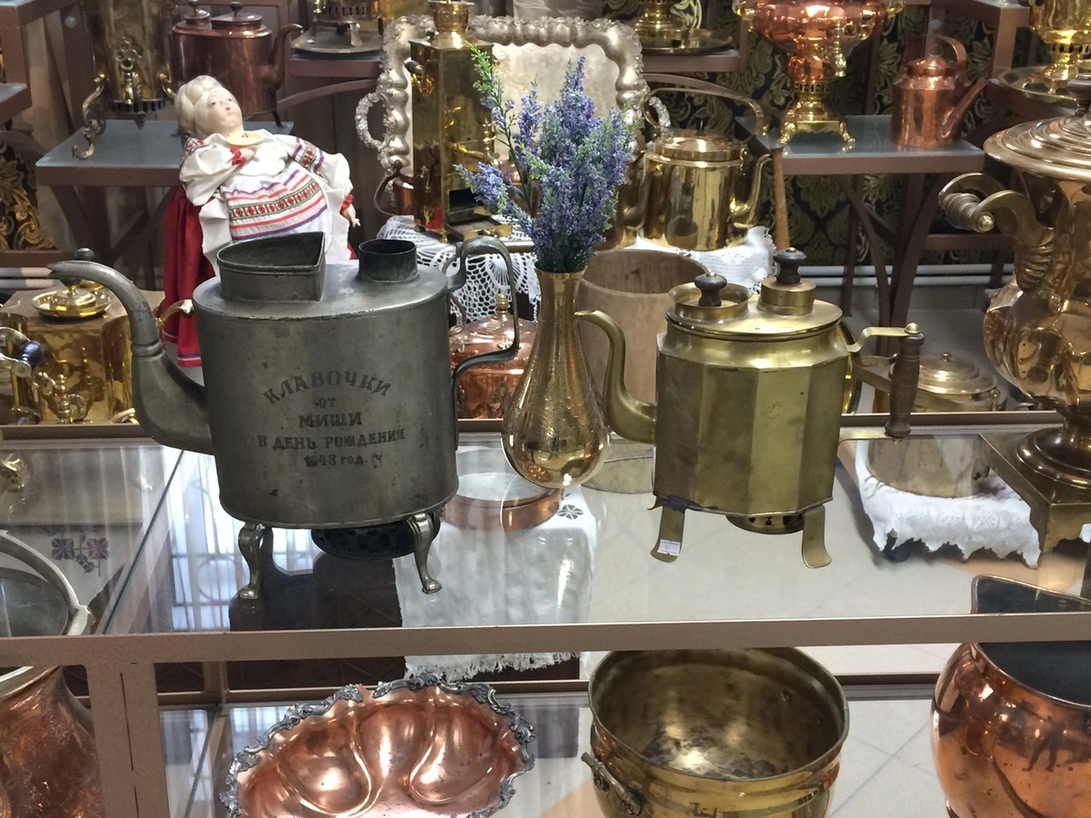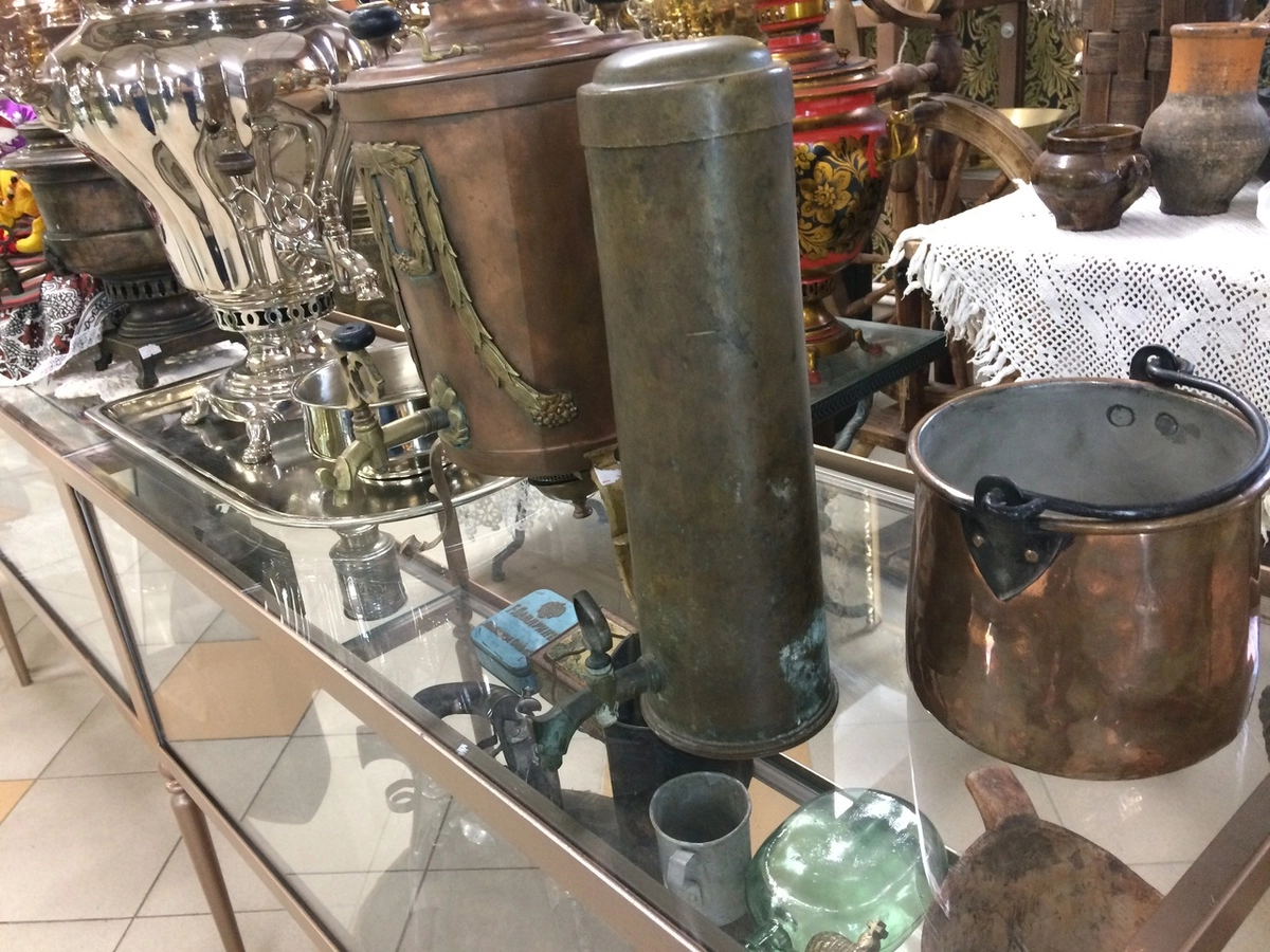 Самым необычным для меня стал солдатский самовар на 60 литров, который использовали ещё в царских войсках, чтобы наливать чай одновременно нескольким солдатам.