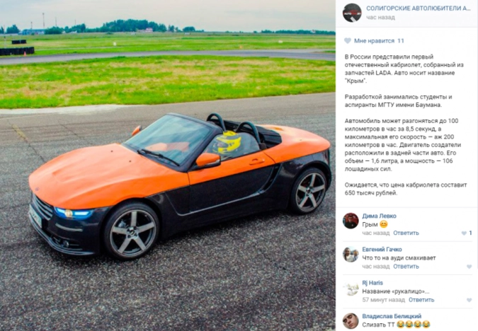 Согласно информации, размещенной в соцсети «ВКонтакте», автомобиль будет стоить в пределах 650 тысяч рублей.