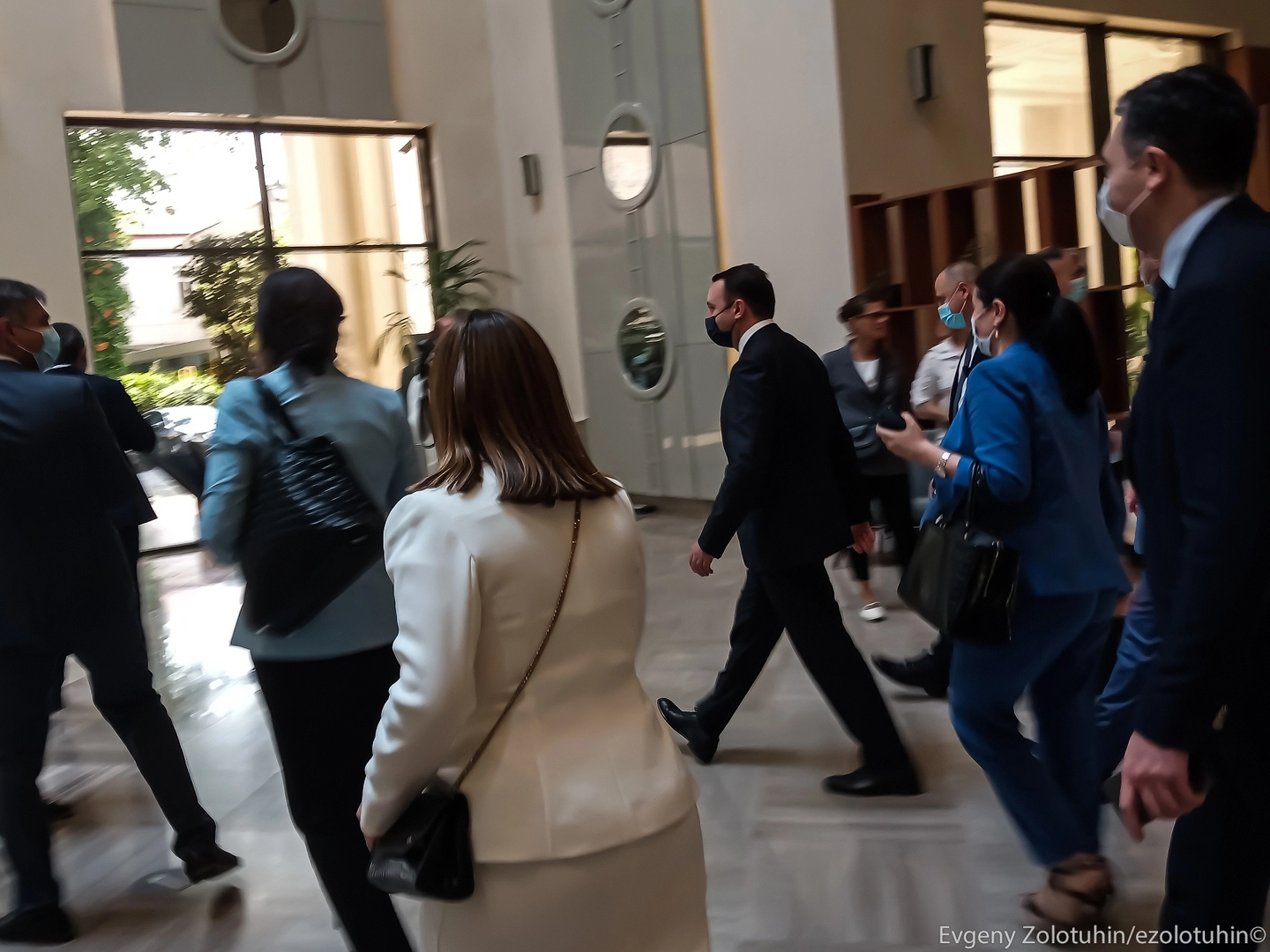 Первой в переговорный кабинет пришла президент Грузии Саломе Зурабишвили, фигура скорее номинальная, хотя иногда она делает заявления, которые не совсем совпадают с «линией партии». Например, перед встречей она опубликовала в фейсубке пост, в котором осудила депутатов из правящей партии «Грузинская мечта», которые теперь отказываются общаться с оппозиционными СМИ. По словам Зурабишвили, независимо от критической позиции все журналисты имеют право работать и ограничивать и байкотировать их нельзя, ведь это как-то не по-европейски.