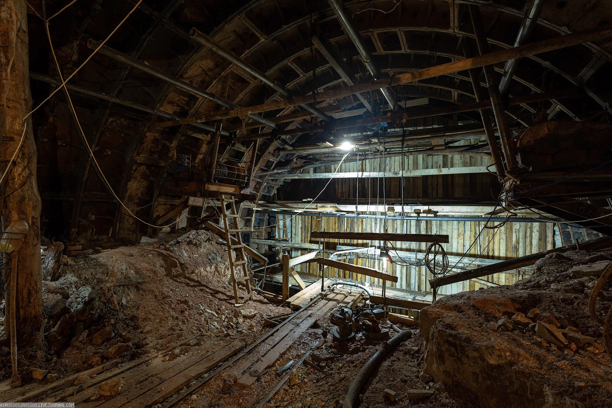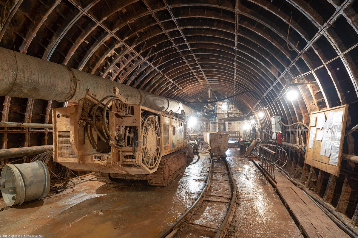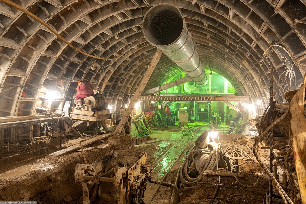 Старый руддвор еще с начала 90-х годов. Прямо — забутованные выработки от предыдущего строительства. Направо новая штольня длиной около километра к станции «Шереметьевская».