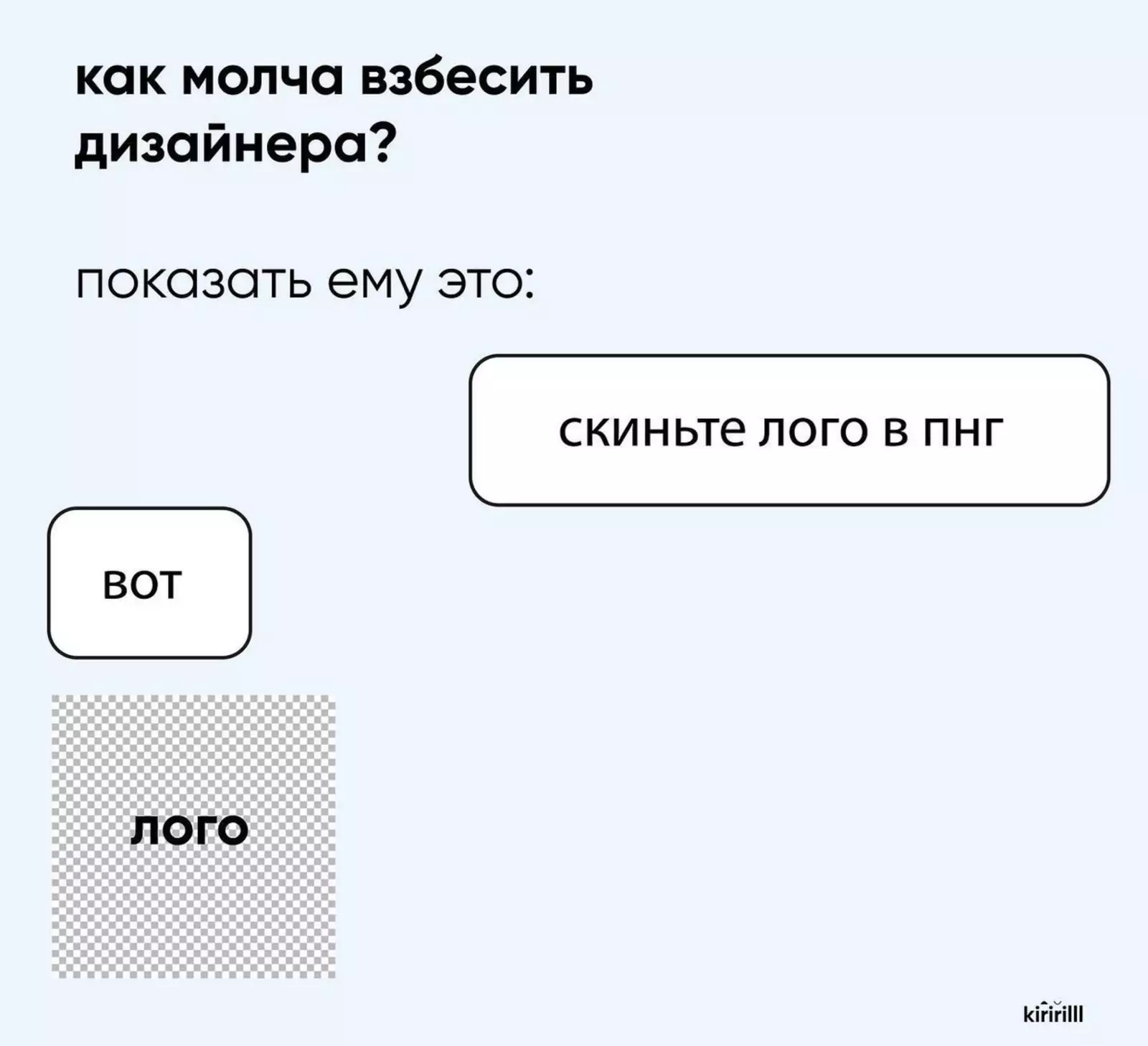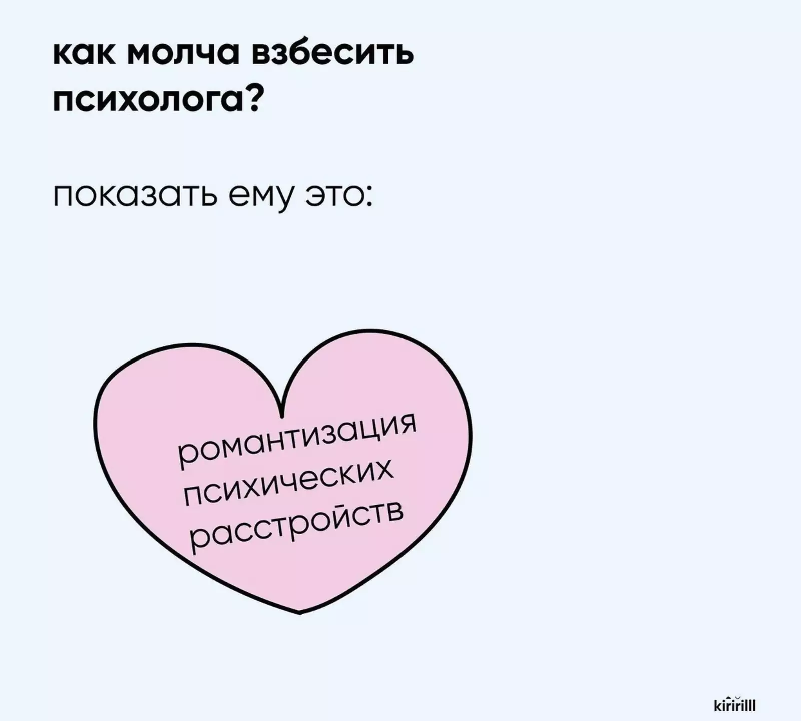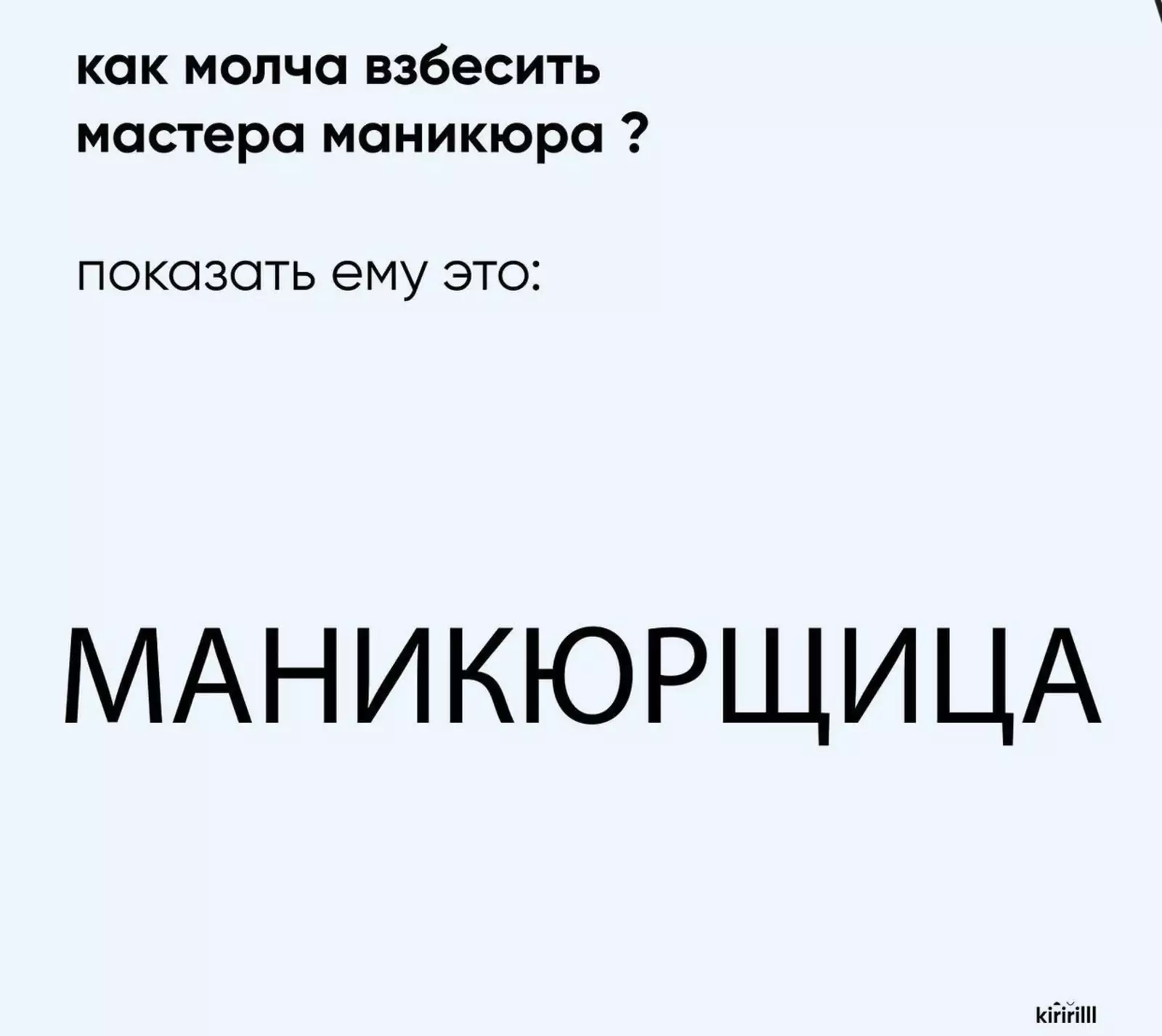 Именно такими подобных личностей увидел блогер, ведущий соцсети под ником @kiririll. С помощью созданных им мемам можно вывести до точки кипения и психолога, и фотографа, и даже своего преданного мастера по маникюру. Причем достаточно будет просто показать одну из картинок.