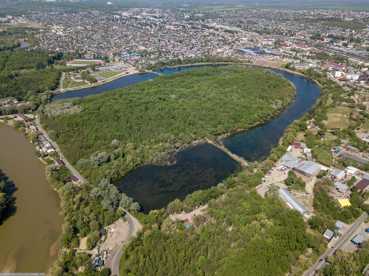 Панорама города, реки Кубань, старицы и нашего героя репортажа.