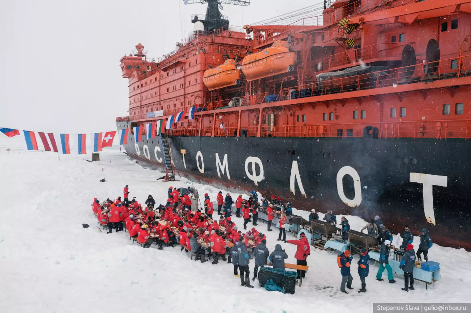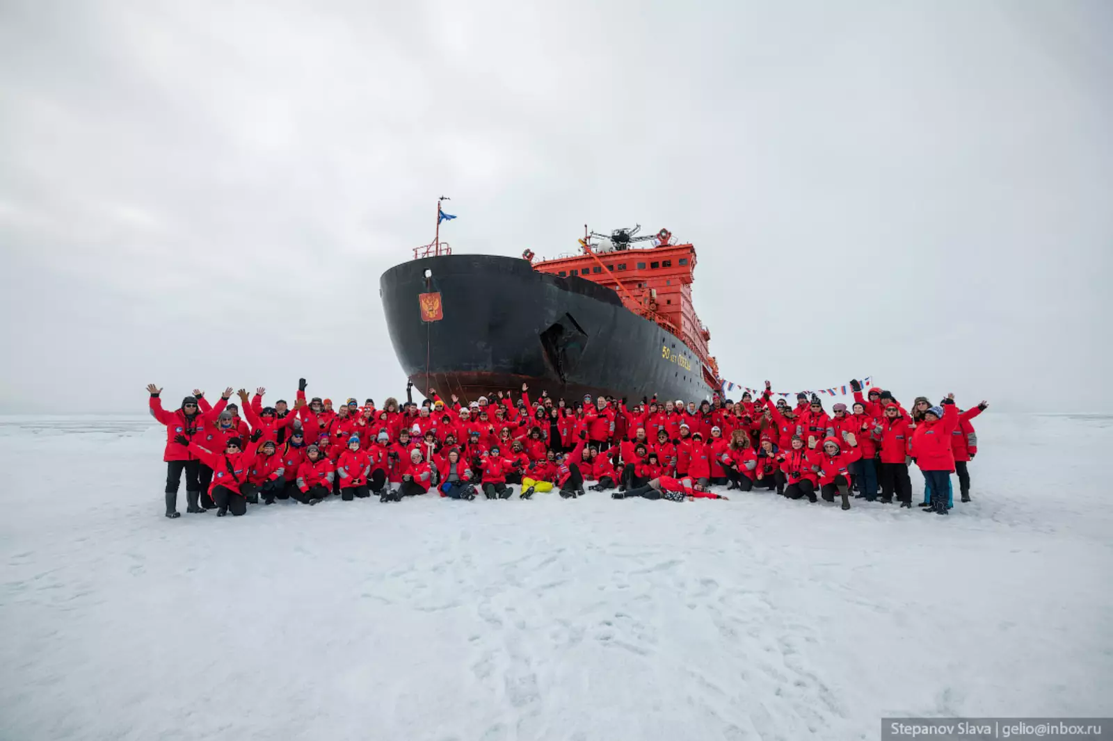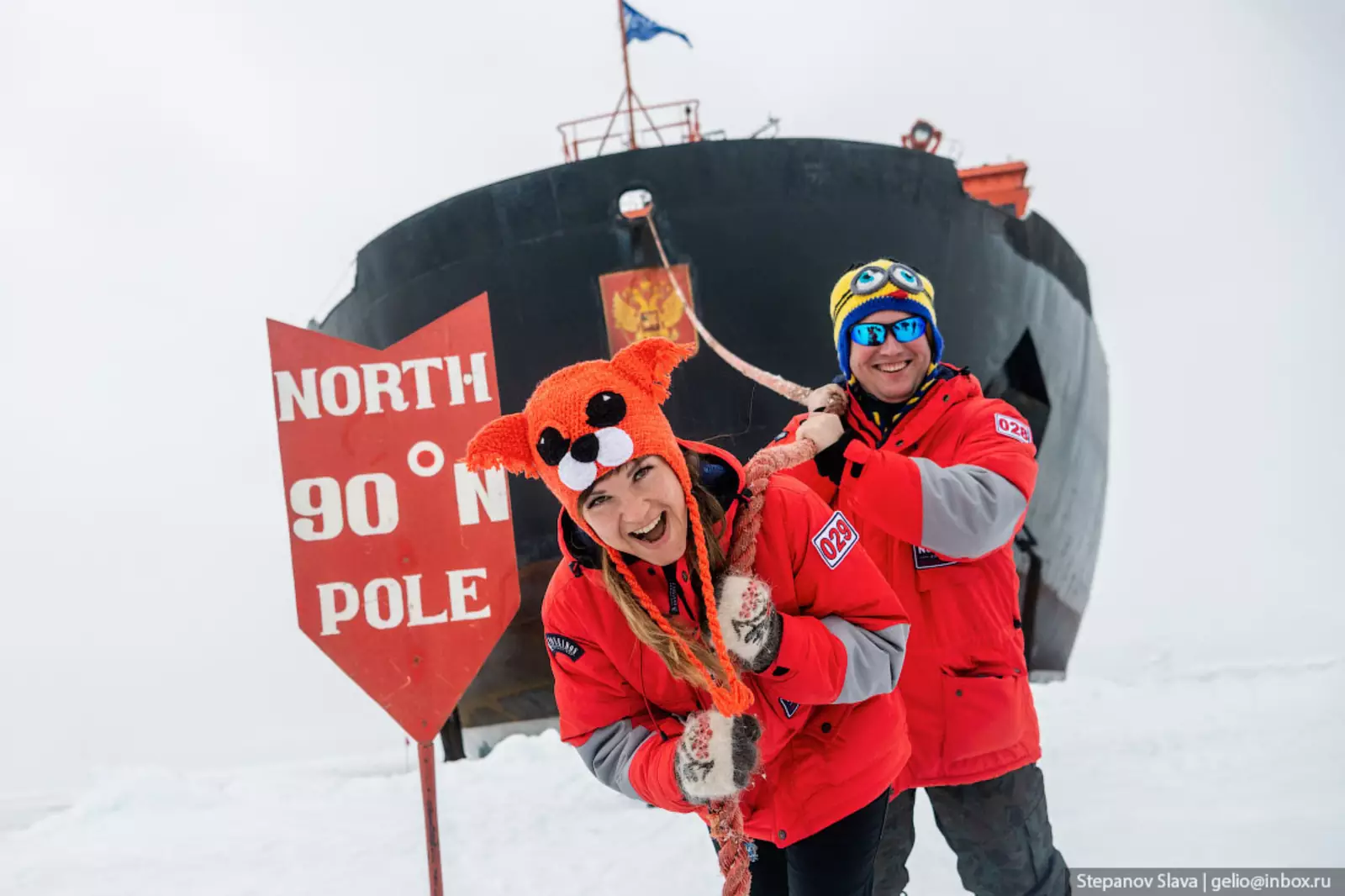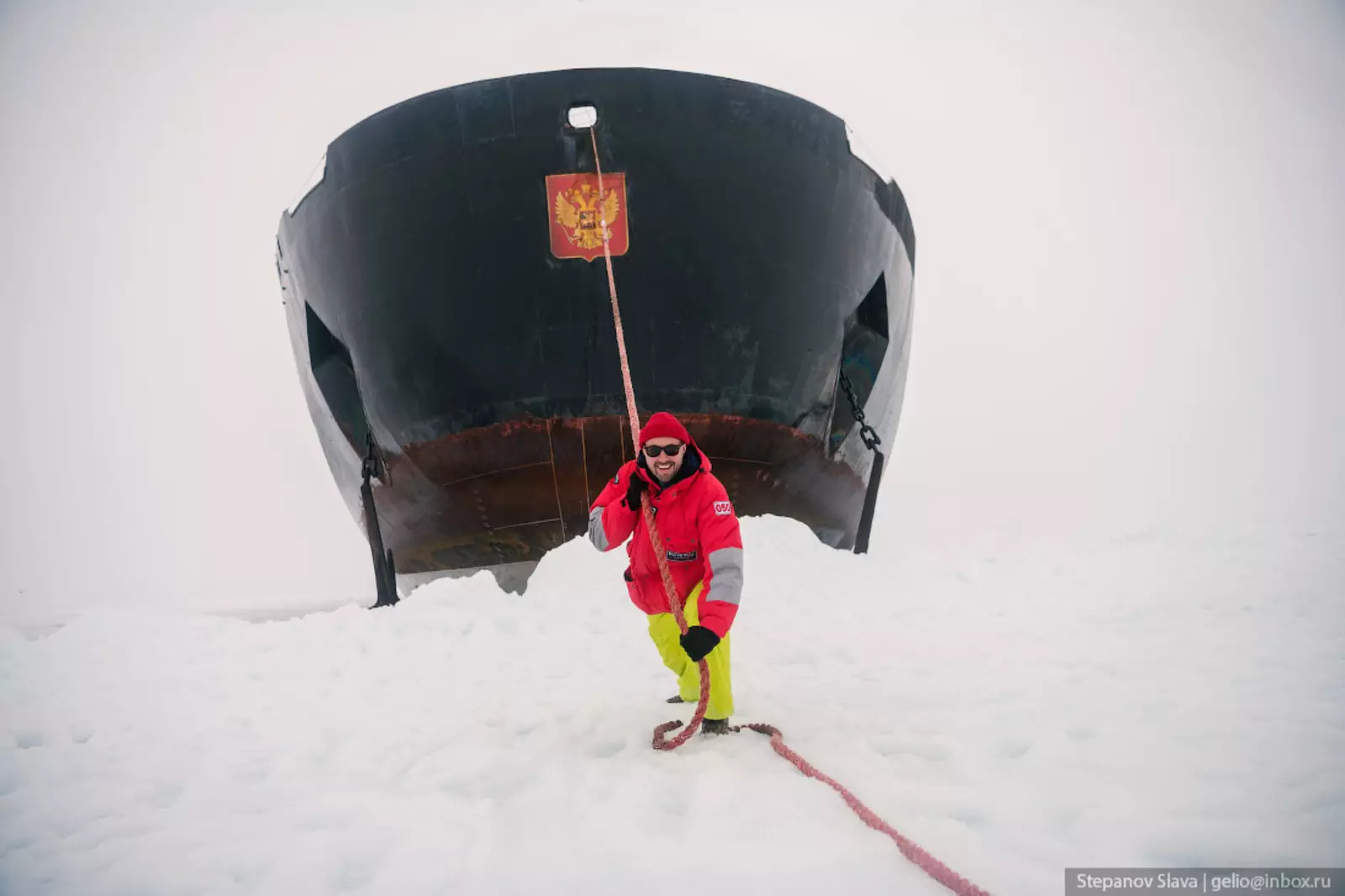 40. Одно из самых популярных фото на Северном полюсе — тянуть ледокол за канат. Такие фотографии наверняка есть у каждого туриста, который побывал на «вершине мира»