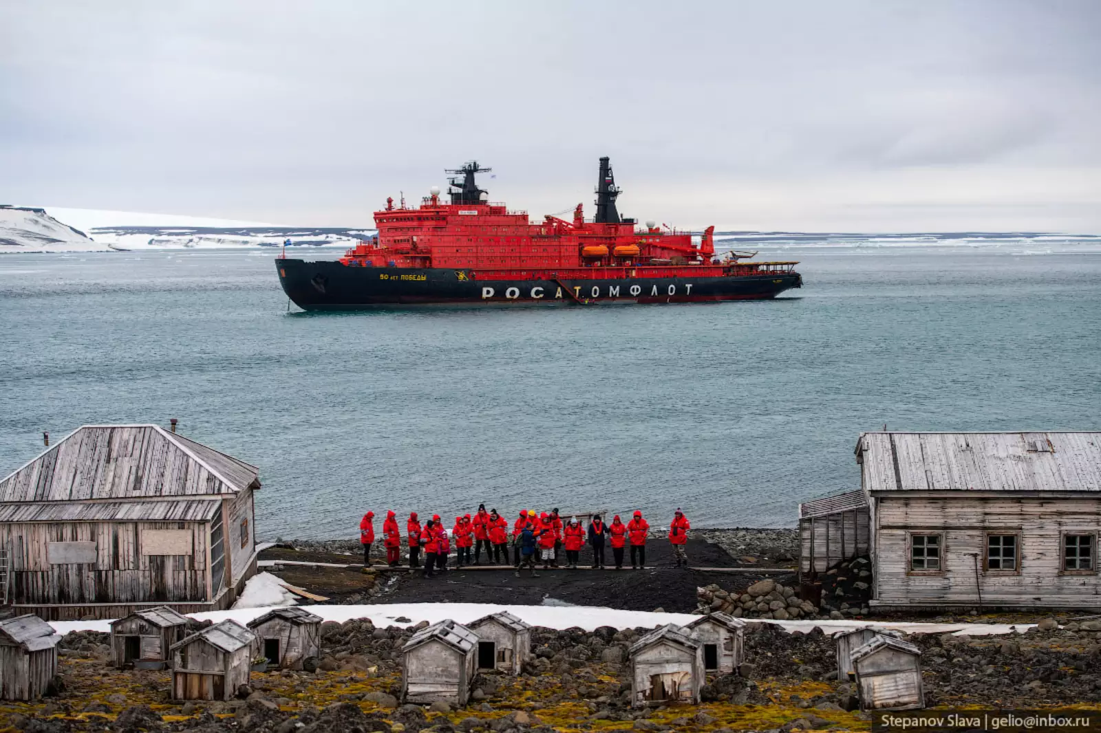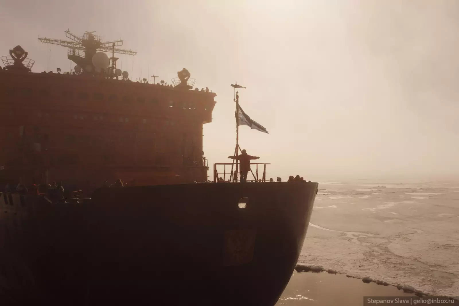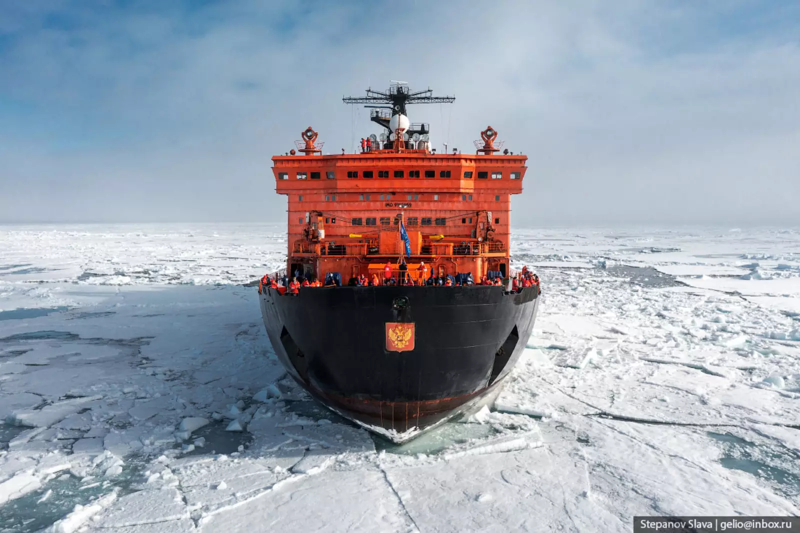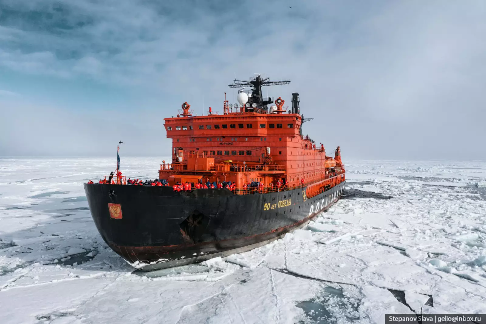 40. Одно из самых популярных фото на Северном полюсе — тянуть ледокол за канат. Такие фотографии наверняка есть у каждого туриста, который побывал на «вершине мира»