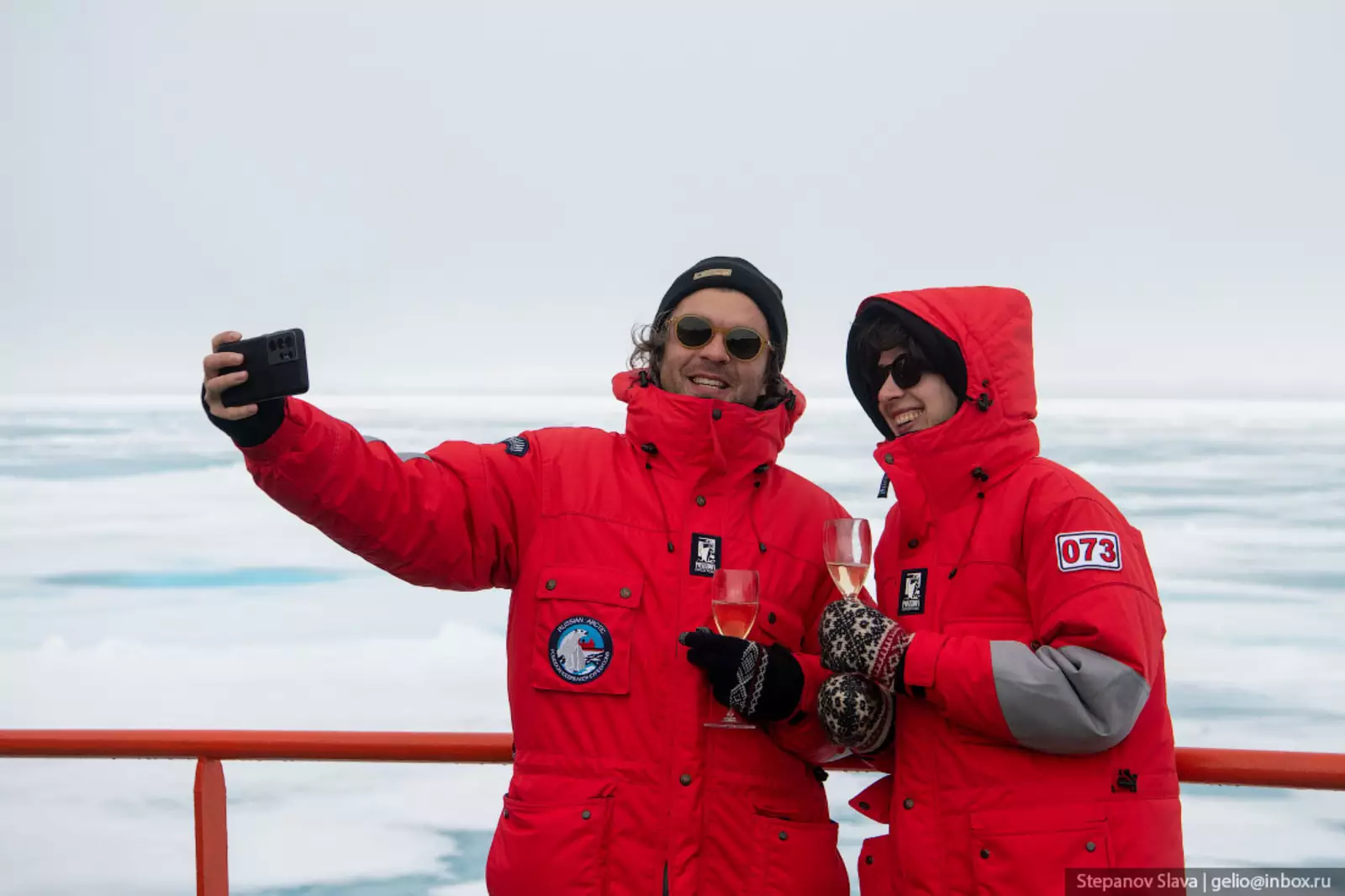 72. Туристы делают заключительные снимки на борту. Круиз у всех вызывает много эмоций — поездка на Северный полюс надолго остается одним из самых ярких событий в жизни.