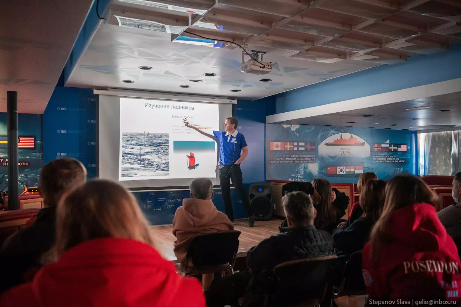 64. На борту проводятся мастер-классы по истории, геологии, флоре и фауне регионов, через которые лежит путь судна. Все желающие могут узнать о млекопитающих, птицах, малоизвестных обитателях подводного мира океанских глубин, научиться различать особи китов. Бывают лекции о климате и его изменении, ледовом покрове, истории освоения Севера.