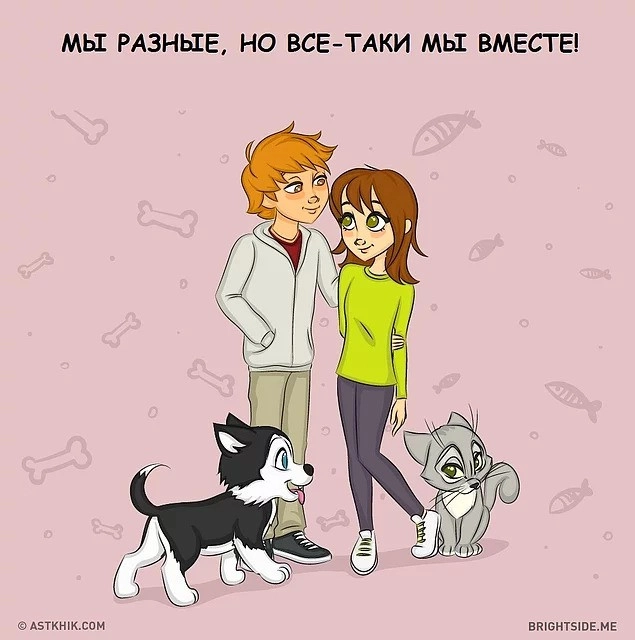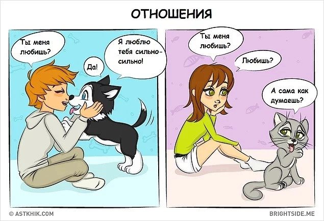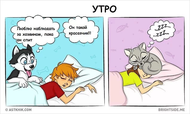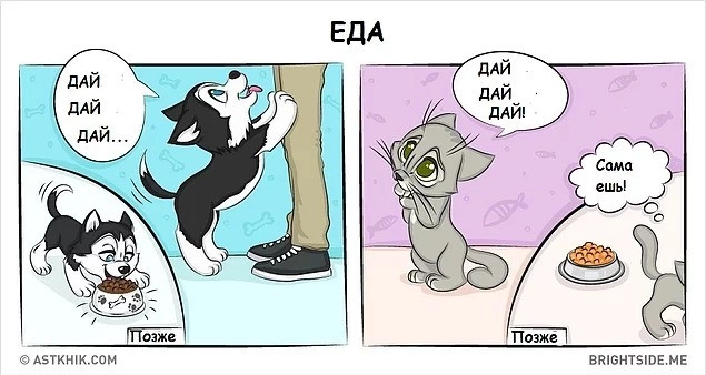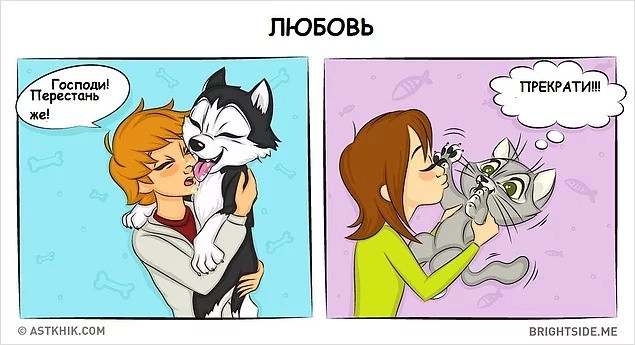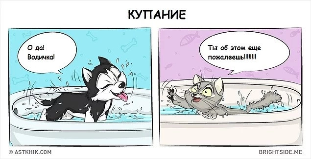Если вы спросите своих друзей и знакомых, кого они больше любят — собак или кошек, наверняка все они разделятся на два лагеря. Те, кто любит поспать и понежиться, скорее всего, предпочитают кошек. А те, кто любит гулять и вести активный образ жизни, наверняка выберут собак. Одно точно объединяет и кошатников и собачников — шерсть своих животных вы будете находить повсюду! Давайте посмотрим, чем ещё похожа и различна жизнь хозяев кошек и собак.