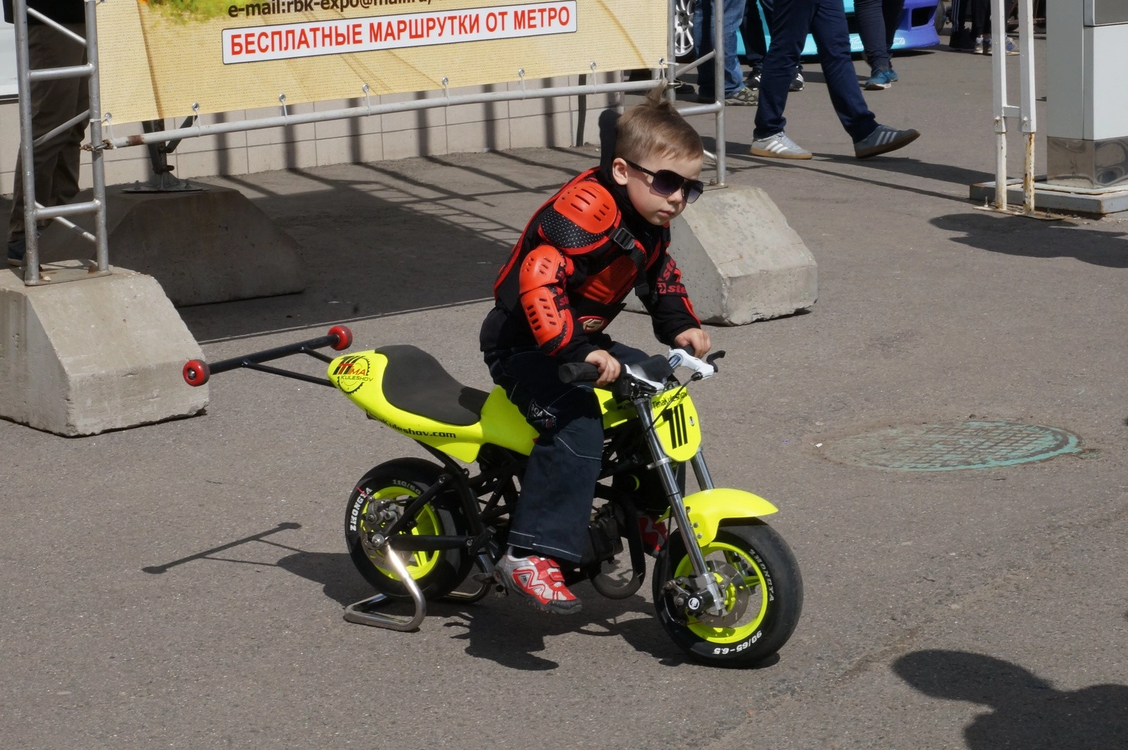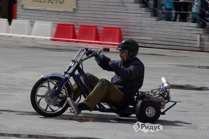 Интересной особенностью «гоночной» части этой выставки стали заезды легких трайков (трехколесный мотоцикл). Особой скорости от этих маломощных машин, напоминающих гибрид детского трехколесного велосипеда и газонокосилки, ждать бессмысленно, между тем коллективные заезды в их исполнении выглядят достаточно забавно.