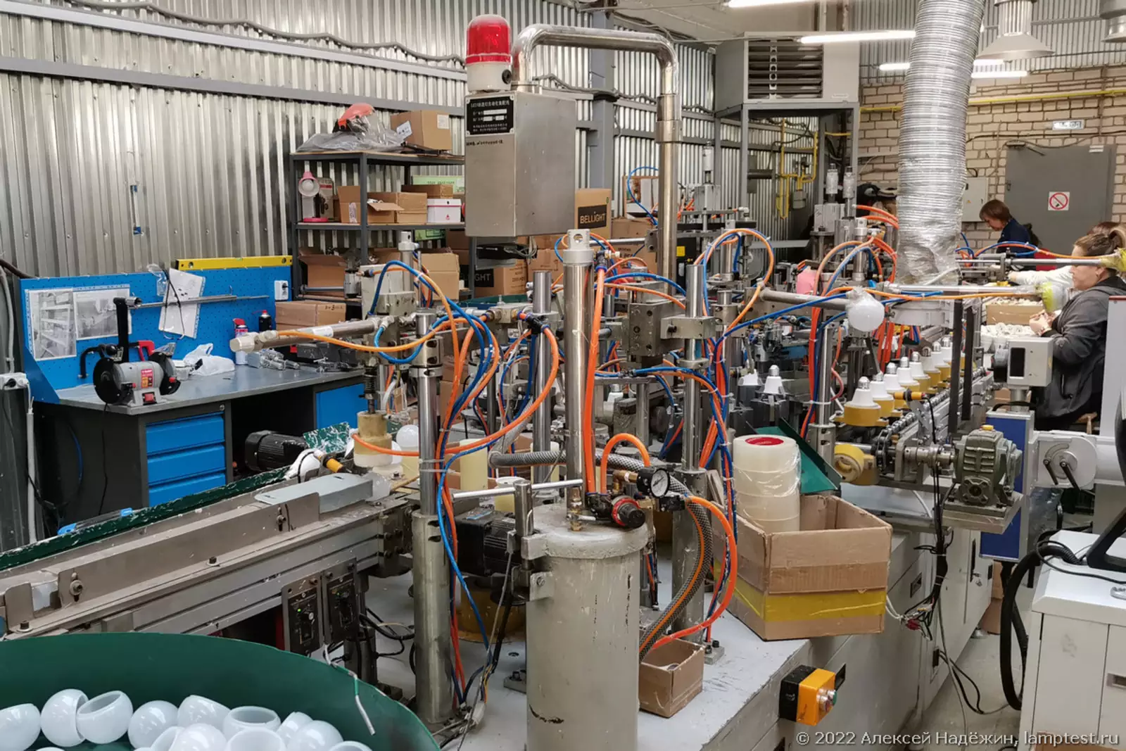 После установки цоколя прямо на конвейере лампа включается, и если она не засветилась — отбраковывается.