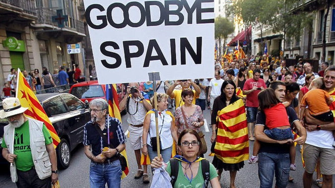 Женщины на митинге во имя независимости Каталонии от Испании, октябрь 2017 года.