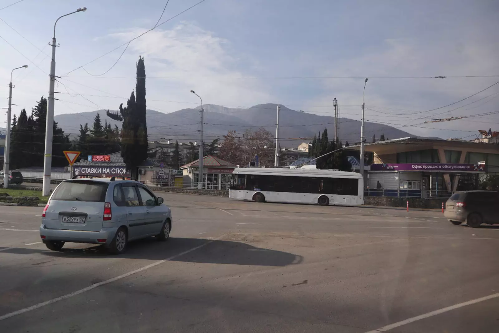 Есть ещё пригородные с обеих сторон. В Ялте это 42 до Никитского ботанического сада, а в Симферополе — 21 до Перевального. На нём встречаются вот такие трёхосные «Богданы».