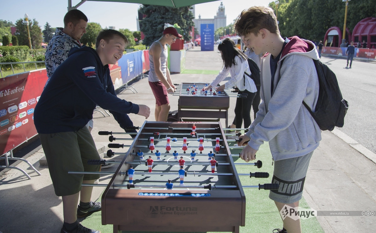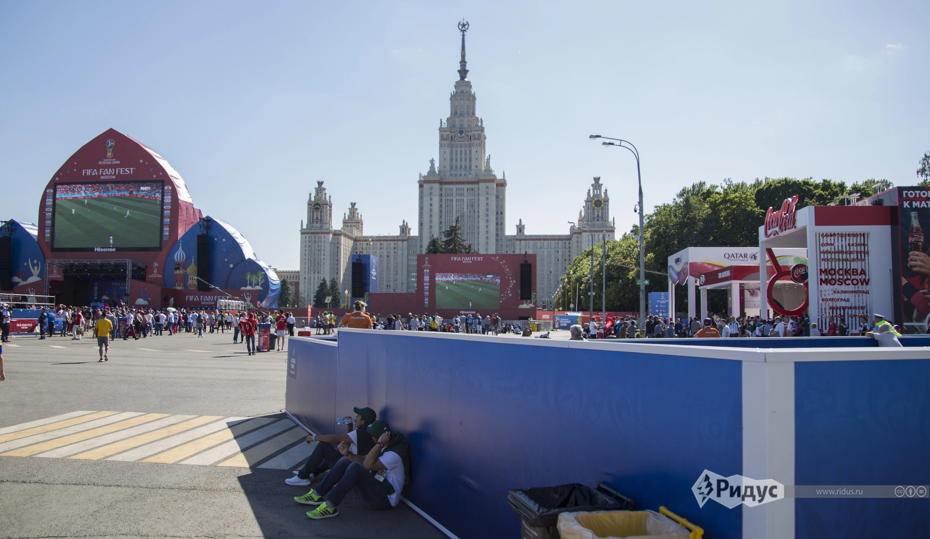 Что внутри? Во-первых, большое количество зон с экранами, где можно посмотреть все матчи чемпионата мира 2018. Центральный — самый большой и со сценой — находится прямо напротив здания МГУ. В перерывах между матчами там выступают диджеи и музыканты.
