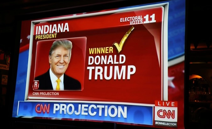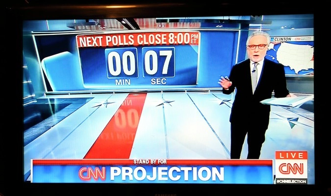 Никаких презентаций американцы не проводили, а просто завтракали и смотрели на мониторы, где демонстрировались промежуточные итоги голосования в США.