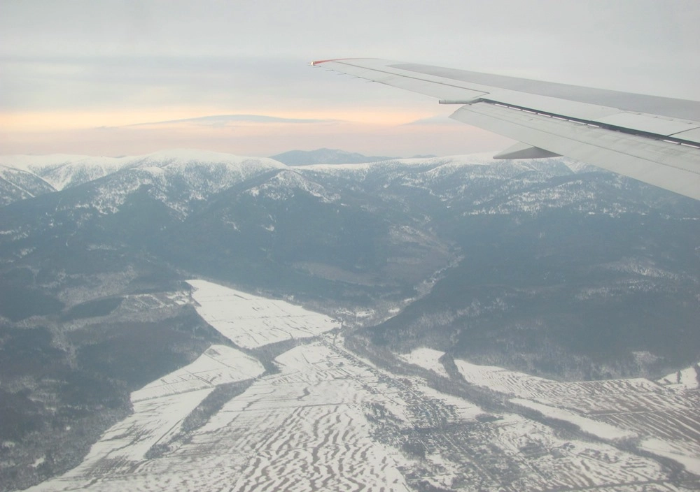 Едва самолёт вынырнул из облаков, приближаясь к Южно-Сахалинску, стало ясно: синоптики не врут — над островом низкая облачность, сопки покрыты снегом.