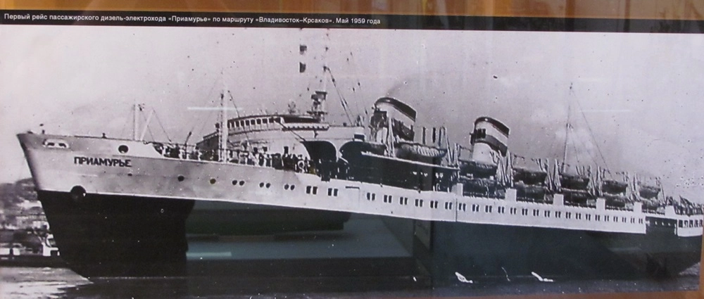Первый рейс пассажирского дизель-электрохода «Приамурье» по маршруту Владивосток — Корсаков. Как жаль, что сейчас нет таких рейсов!