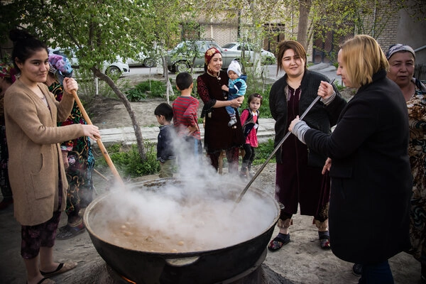 Готовят еду на праздник все жители махалли. Это такие старые кварталы, в которых люди живут десятилетями, и становятся друг другу практически членами семьи. Знают друг друга в лицо, общаются, помогают. Иногда в махалле может быть тысяча человек, и все будут «свои».