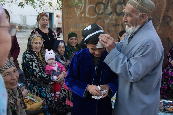 К дому при этом выстраивается огромная очередь просто соседей из махалли, с тарелками. Их всех угощают бесплатно. К обеду обычно все заканчивается. Но дома продолжают отмечать до самого вечера.