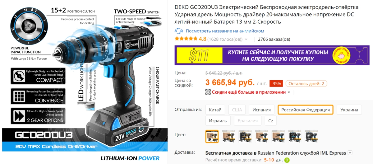 С учетом того, что многие продавцы китайского инструмента на AliExpress уже давно обзавелись складами в России и доставляют покупки примерно за неделю, есть смысл изучить их ассортимент и ценовые предложения поподробнее.