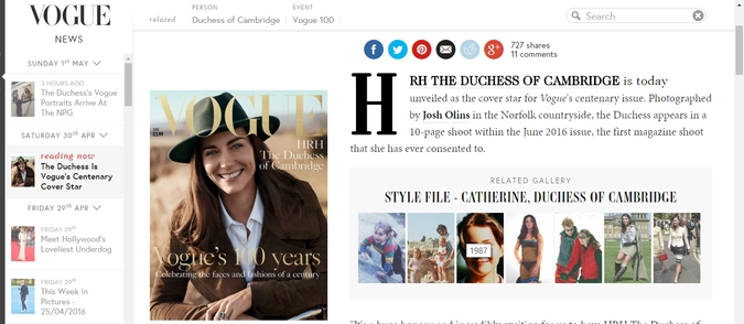 За пять лет замужества фотографии Миддтон украшали первые полосы многих изданий, но в роли «девушки с обложки» герцогиня предстает впервые, отмечает Mirror.
