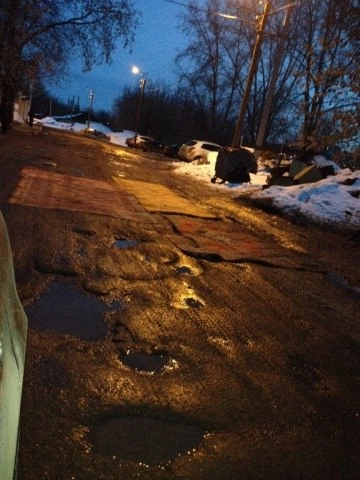 Жители Кирова отчаялись ждать, пока дороги заасфальтируют, и решили прикрыть ямы коврами, сообщает РИА Новости.