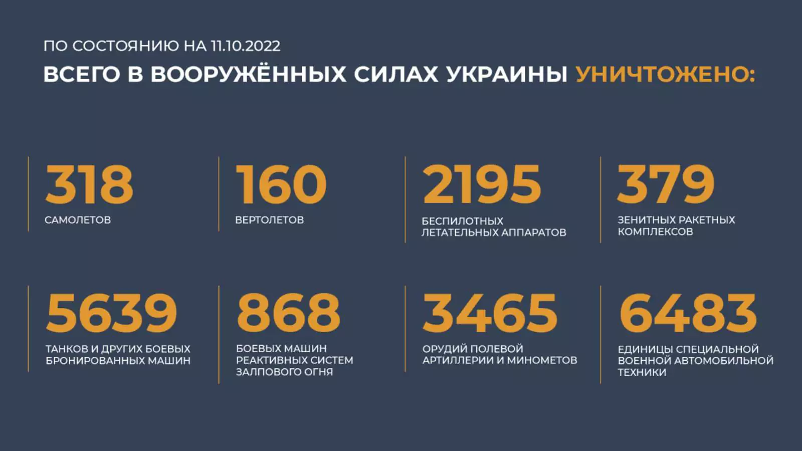 Оперативно-тактическая и армейская авиация, ракетные войска и артиллерия поразили за минувшие сутки пункт управления 66-й механизированной бригады ВСУ, 46 артиллерийских подразделений, две базы хранения топлива, шесть складов боеприпасов.