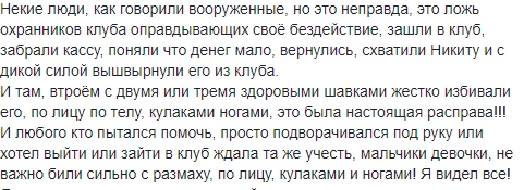 Один из очевидцев нападения на клуб, Петр Филатов, на чьи сообщения в Facebook ссылается «Россия 24», заявил, что использованное в репортаже видео не имеет к этому избиению никакого отношения и снято в другом месте.